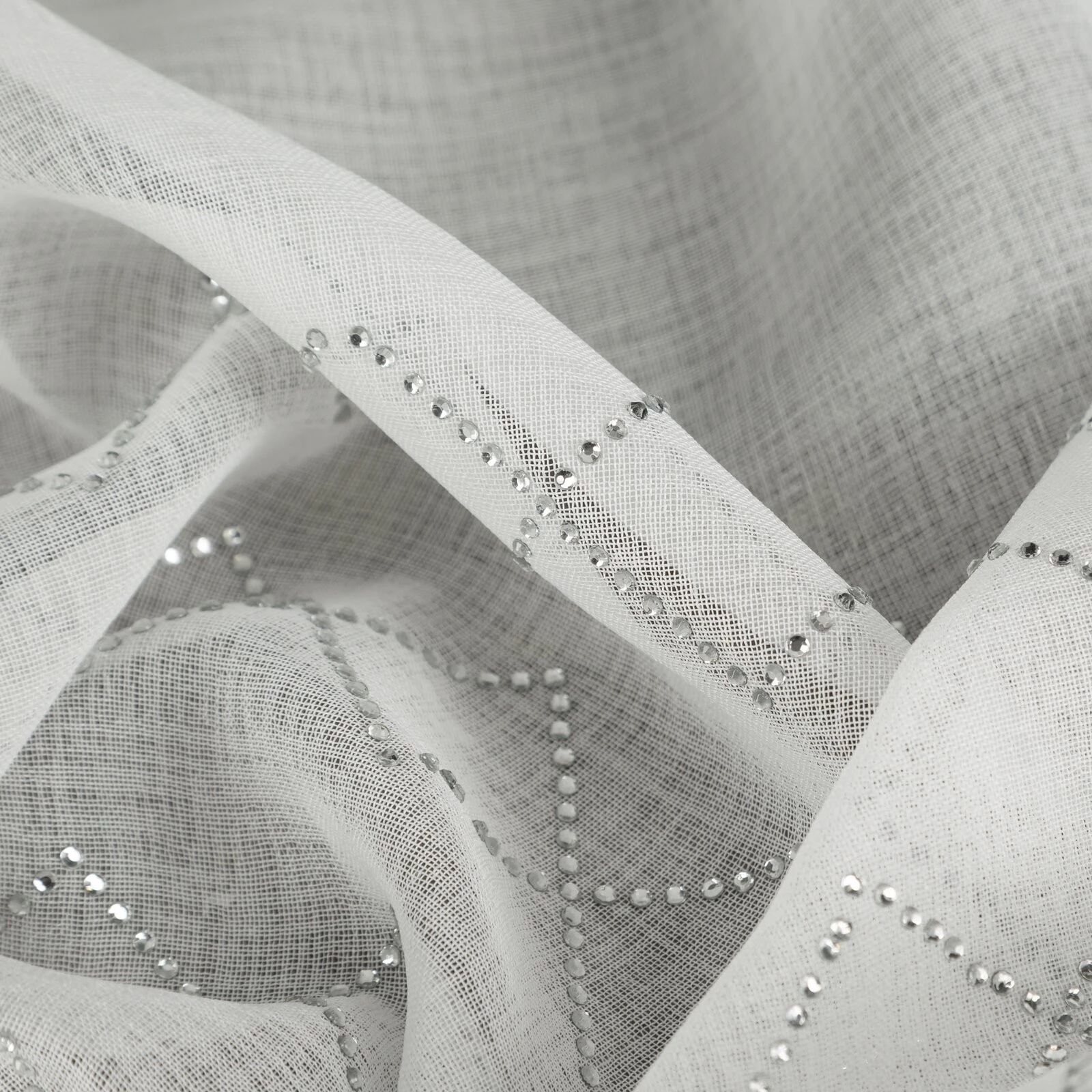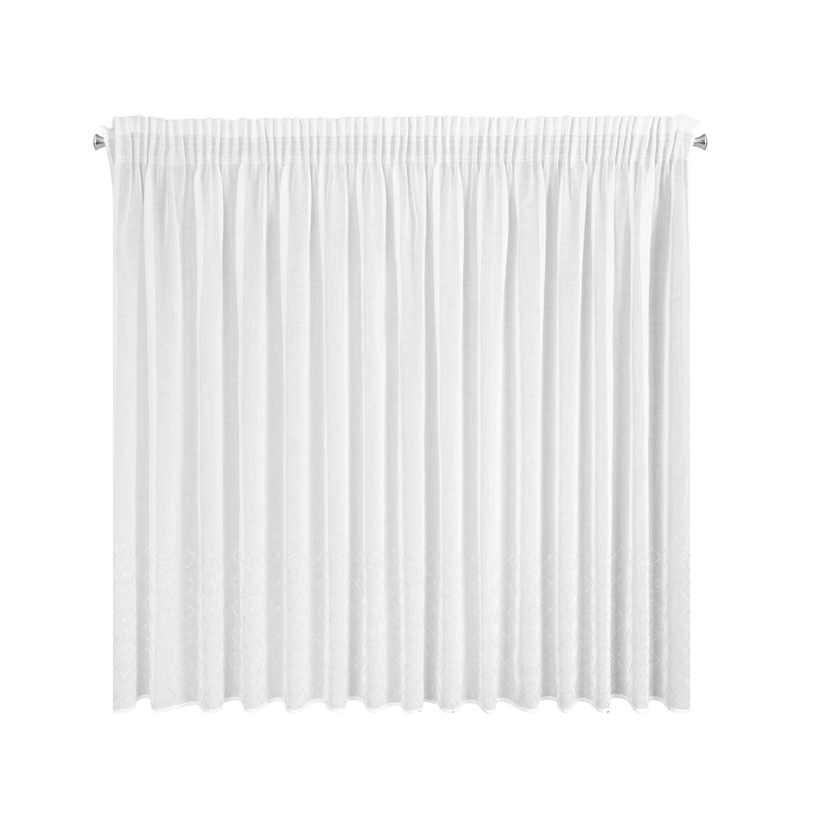 Firana gotowa zdobiona cyrkoniami szerokość: 345 cm, długość: 140 cm, kolor: biały, Gramatura: 70 GSM, Skład: 100% poliester