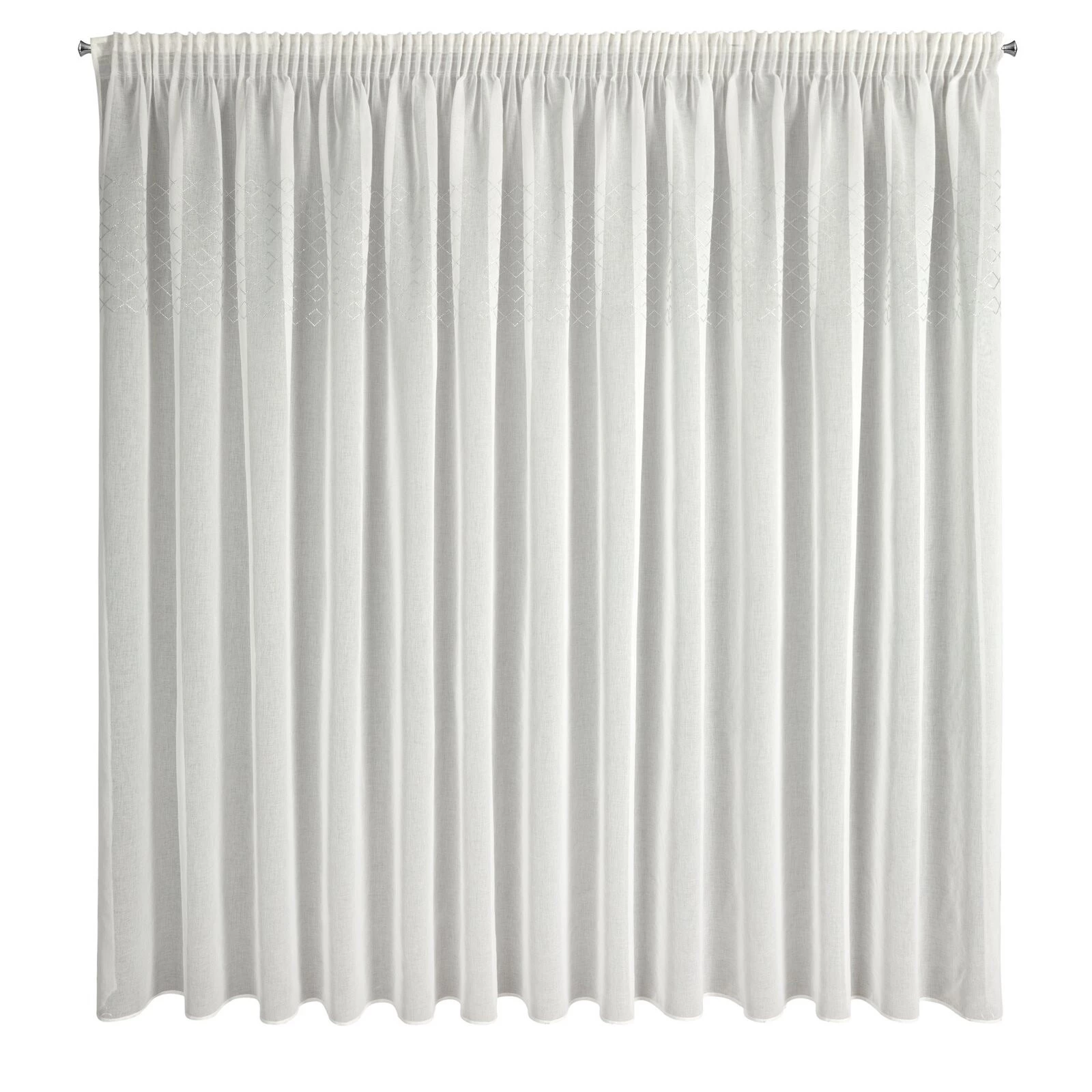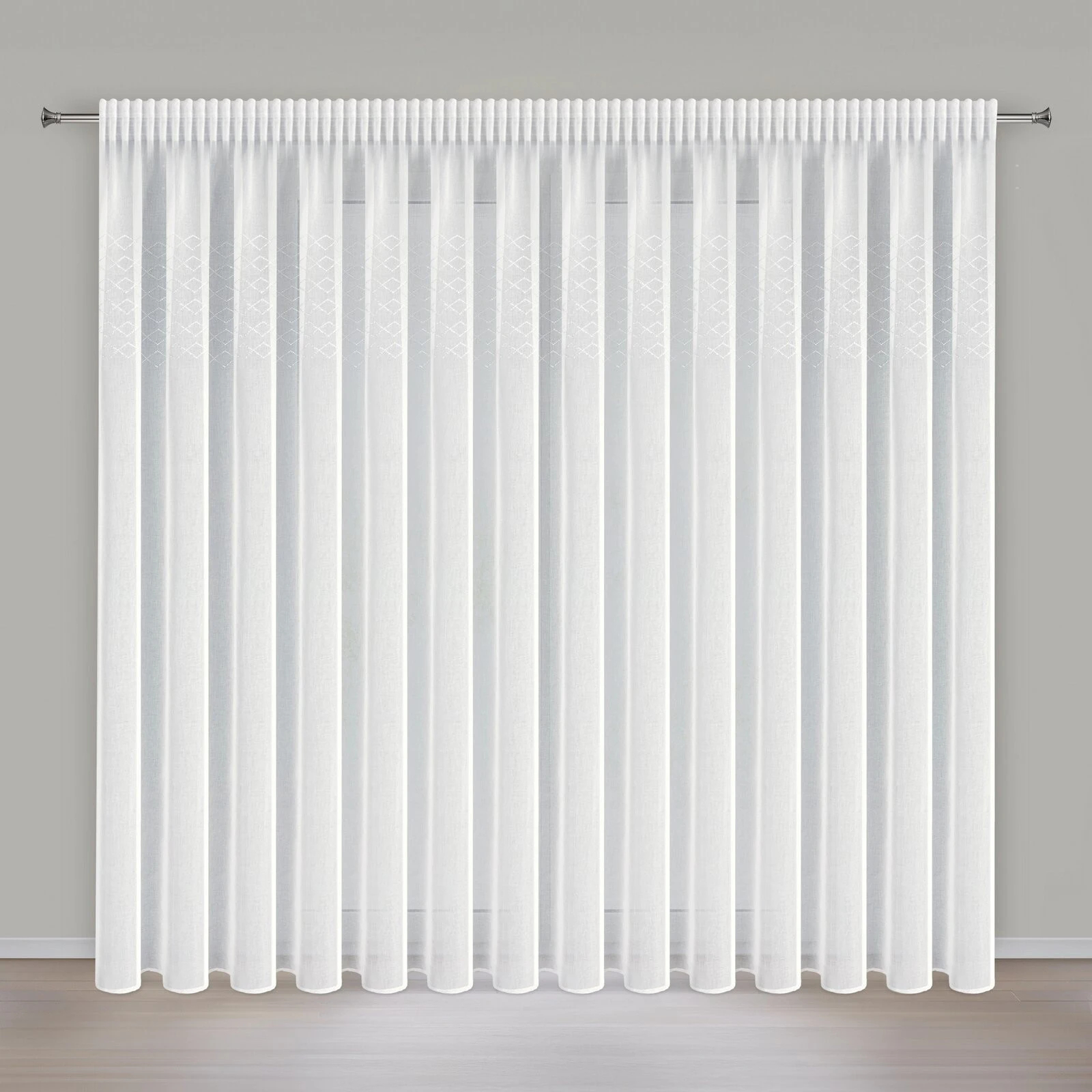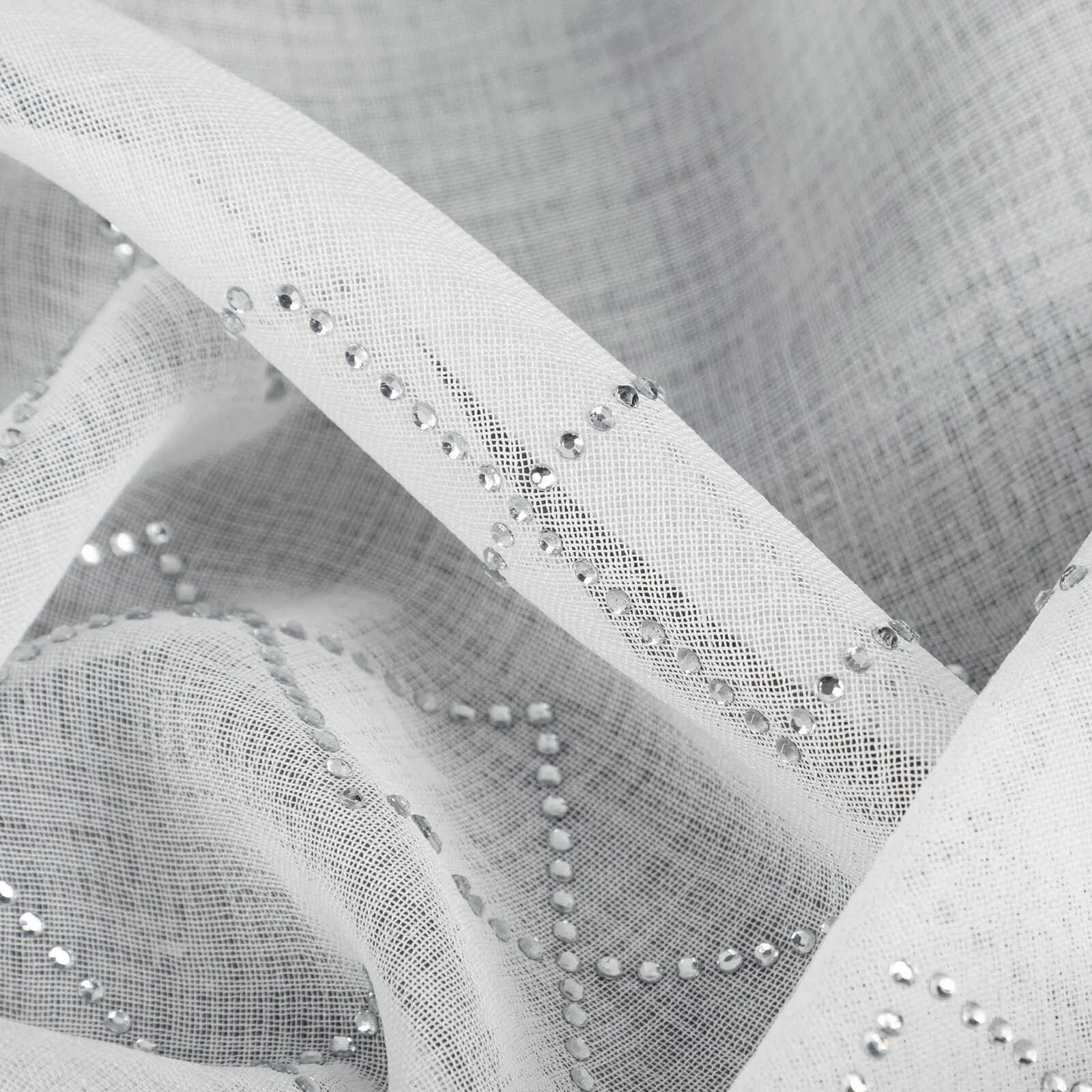 Firana gotowa zdobiona cyrkoniami szerokość: 345 cm, długość: 260 cm, kolor: biały, Gramatura: 70 GSM, Skład: 100% poliester