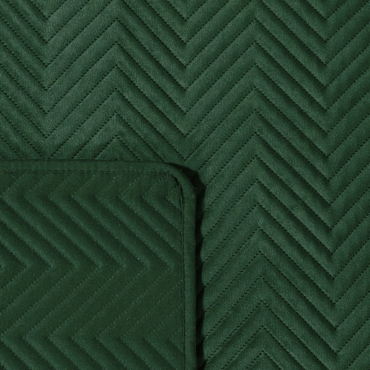 Ekskluzywna narzuta na łóżko z miękkiego i przyjemnego w dotyku welwetu pikowanego w dużą, gęstą jodełką. Do pikowania wykorzystano metodę bezszwową hotpress. szerokość: 230 cm, długość: 260 cm, kolor: ciemnozielony, Gramatura: 250+120+65 GSM, Skład: 100% poliester