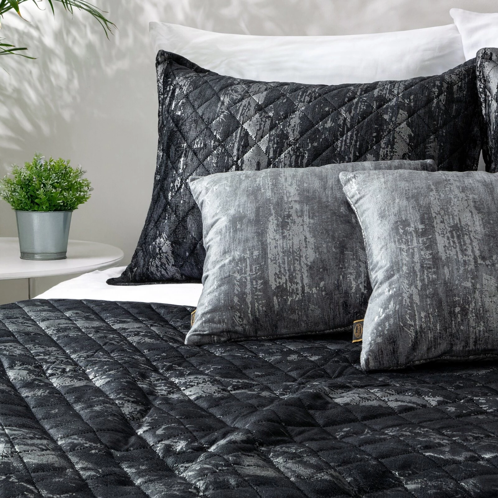 Narzuta welwetowa, wykonana techniką "hot press"z foliowym nadrukiem szerokość: 170 cm, długość: 210 cm, kolor: czarny, Gramatura: 210 GSM, Skład: 100% poliester