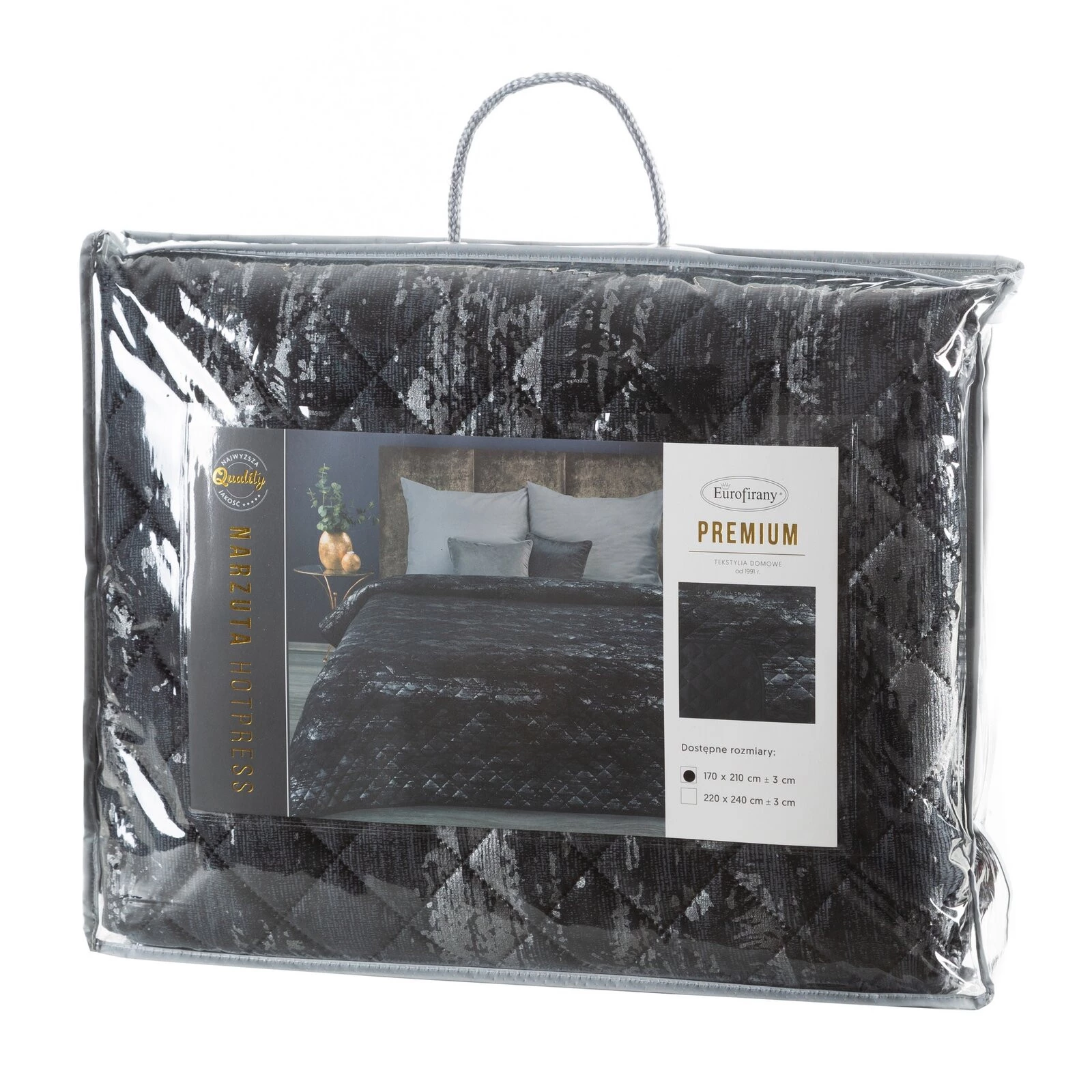 - Narzuta welwetowa, wykonana techniką "hot press"z foliowym nadrukiem szerokość: 170 cm, długość: 210 cm, kolor: czarny, Gramatura: 210 GSM, Skład: 100% poliester