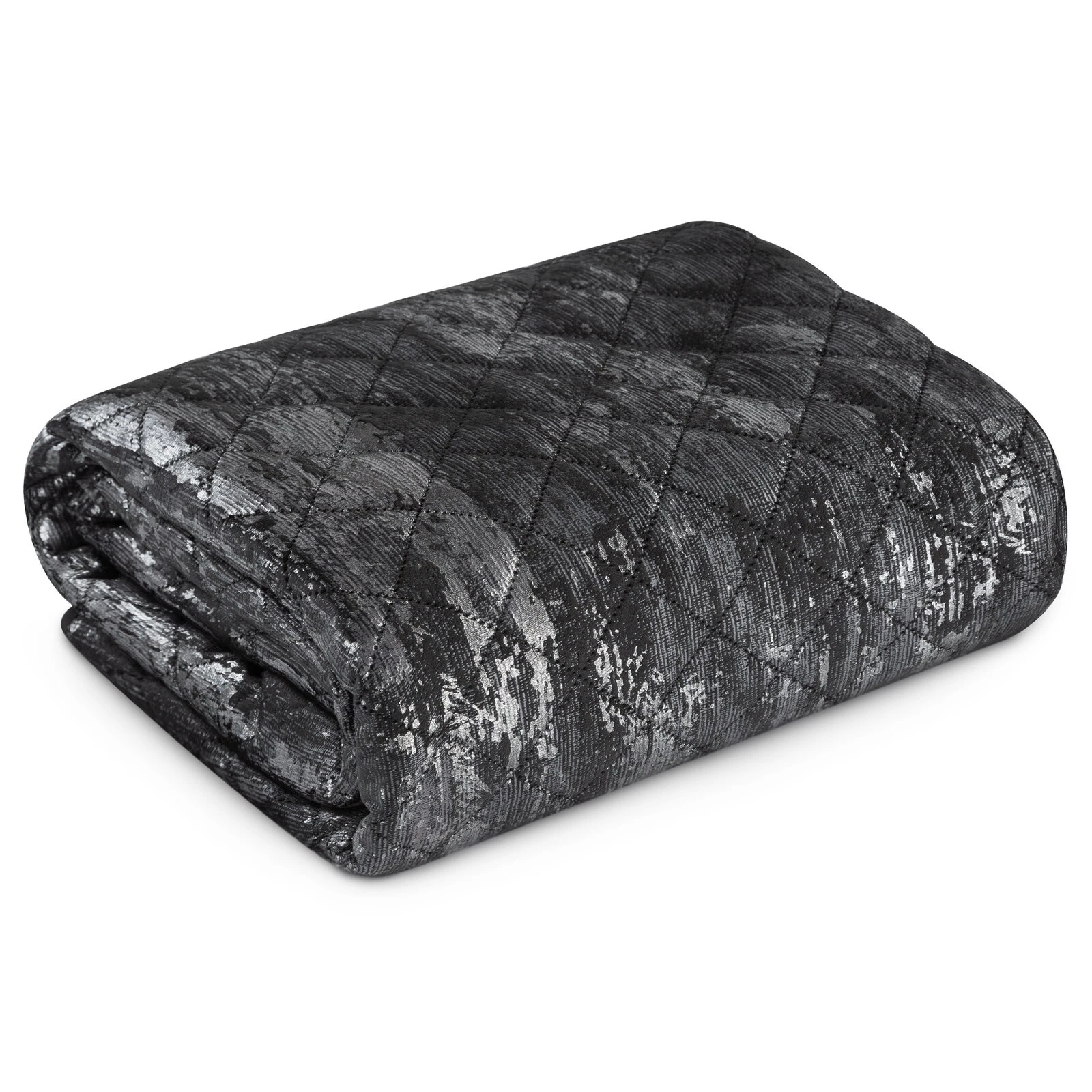 - Narzuta welwetowa, wykonana techniką "hot press"z foliowym nadrukiem szerokość: 220 cm, długość: 240 cm, kolor: czarny, Gramatura: 210 GSM, Skład: 100% poliester