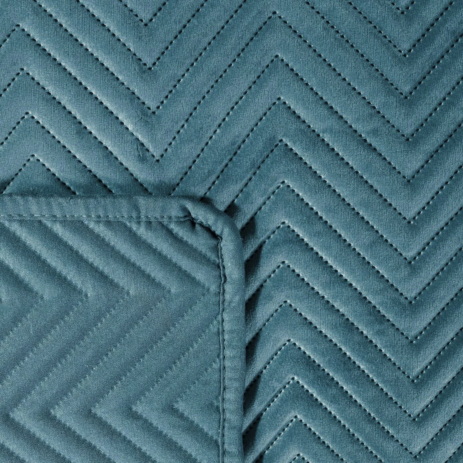 Ekskluzywna narzuta na łóżko z miękkiego i przyjemnego w dotyku welwetu pikowanego w dużą, gęstą jodełką. Do pikowania wykorzystano metodę bezszwową hotpress. szerokość: 230 cm, długość: 260 cm, kolor: niebieski, Gramatura: 250+120+65 GSM, Skład: 100% poliester