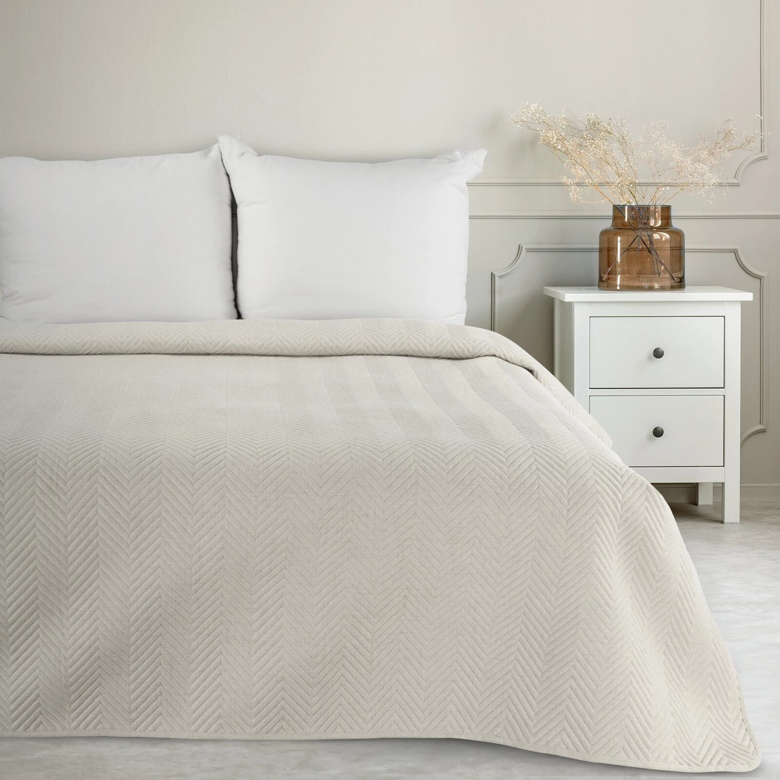 Narzuta hot press imitująca len szerokość: 220 cm, długość: 240 cm, kolor: kremowy, Gramatura: 185 GSM