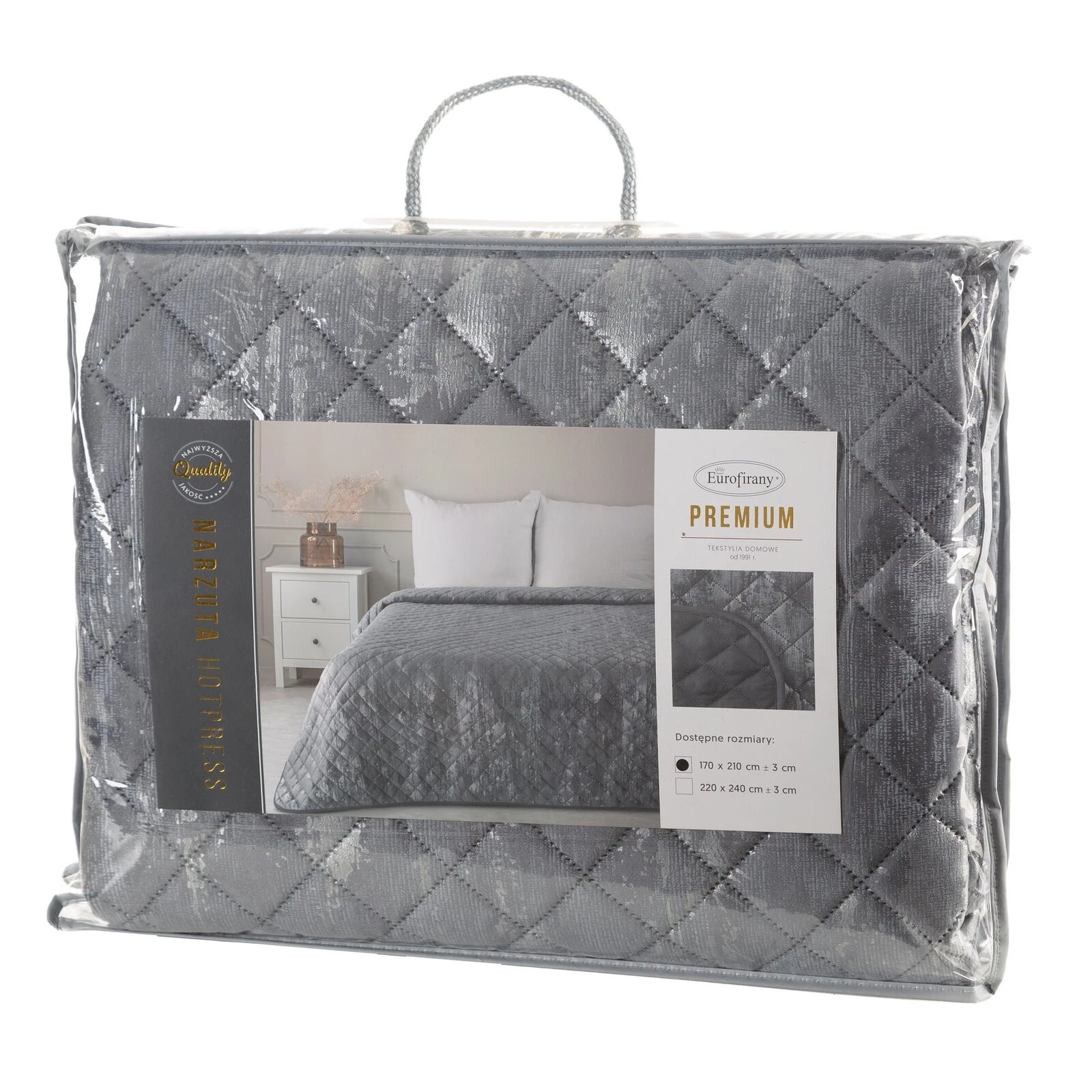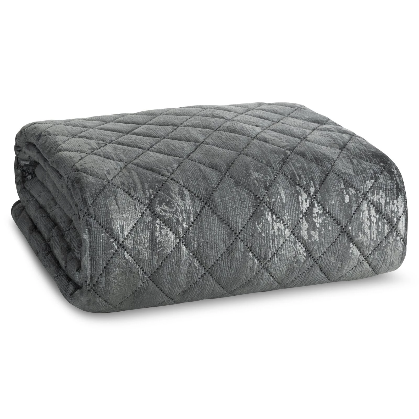 - Narzuta welwetowa, wykonana techniką "hot press"z foliowym nadrukiem szerokość: 220 cm, długość: 240 cm, kolor: stalowy, Gramatura: 210 GSM, Skład: 100% poliester