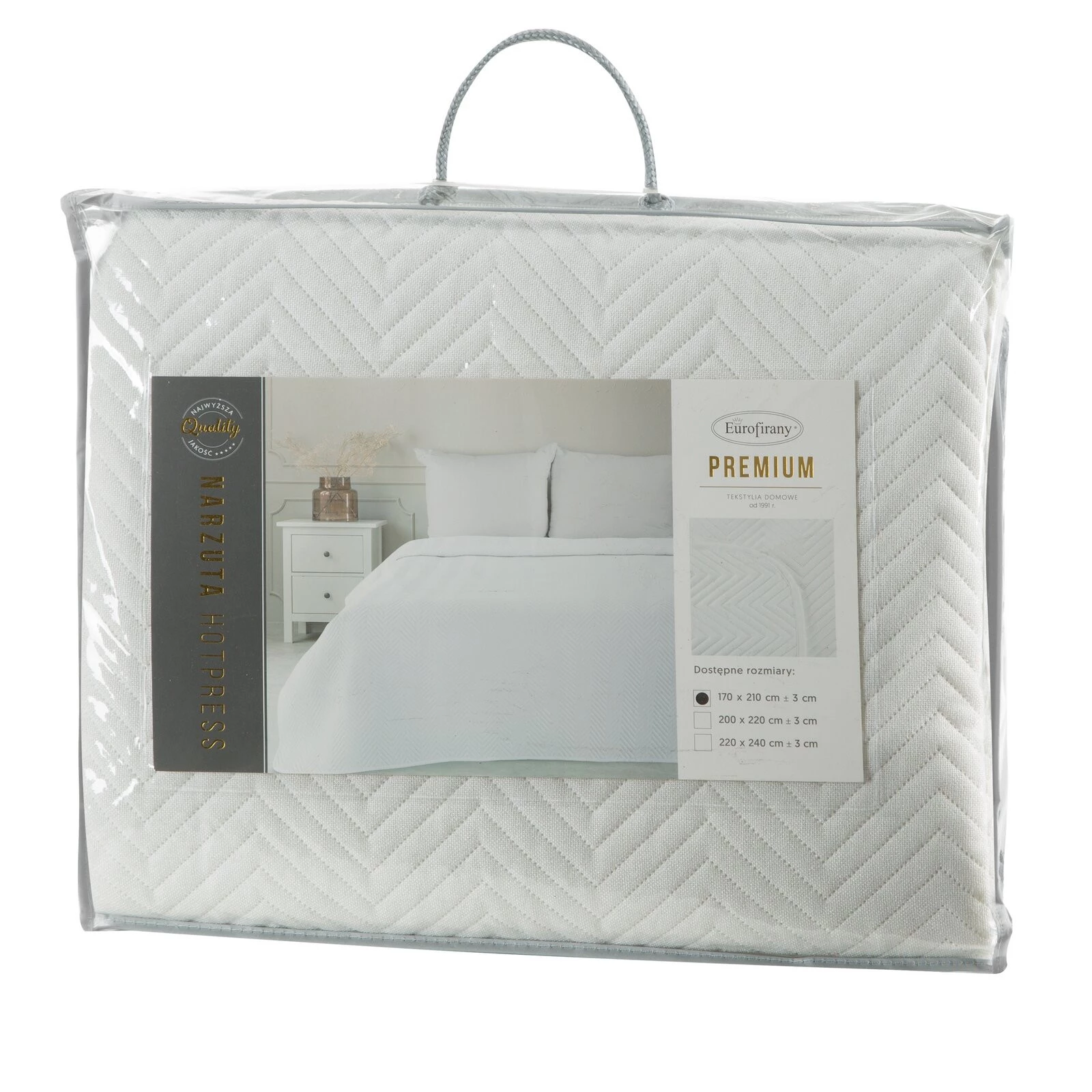 Narzuta hot press imitująca len szerokość: 200 cm, długość: 220 cm, kolor: biały, Gramatura: 185+120+70 GSM, Skład: 100% poliester