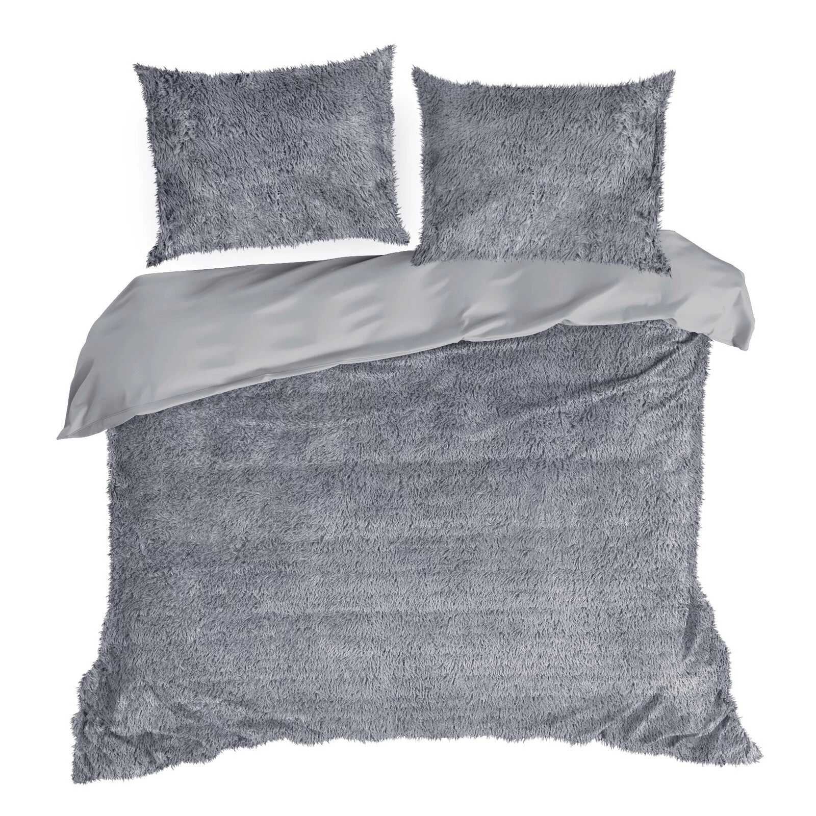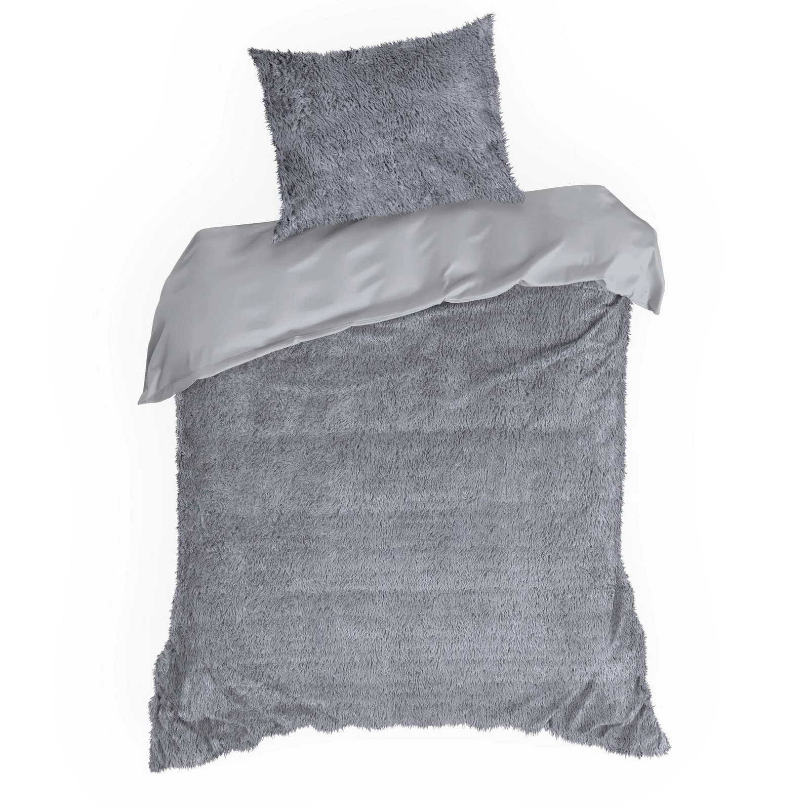 Ciepła i miła w dotyku posciel o strukturze futra szerokość: 220 cm, długość: 200 cm, kolor: srebrny, Gramatura: 240 GSM, Skład: 100% poliester