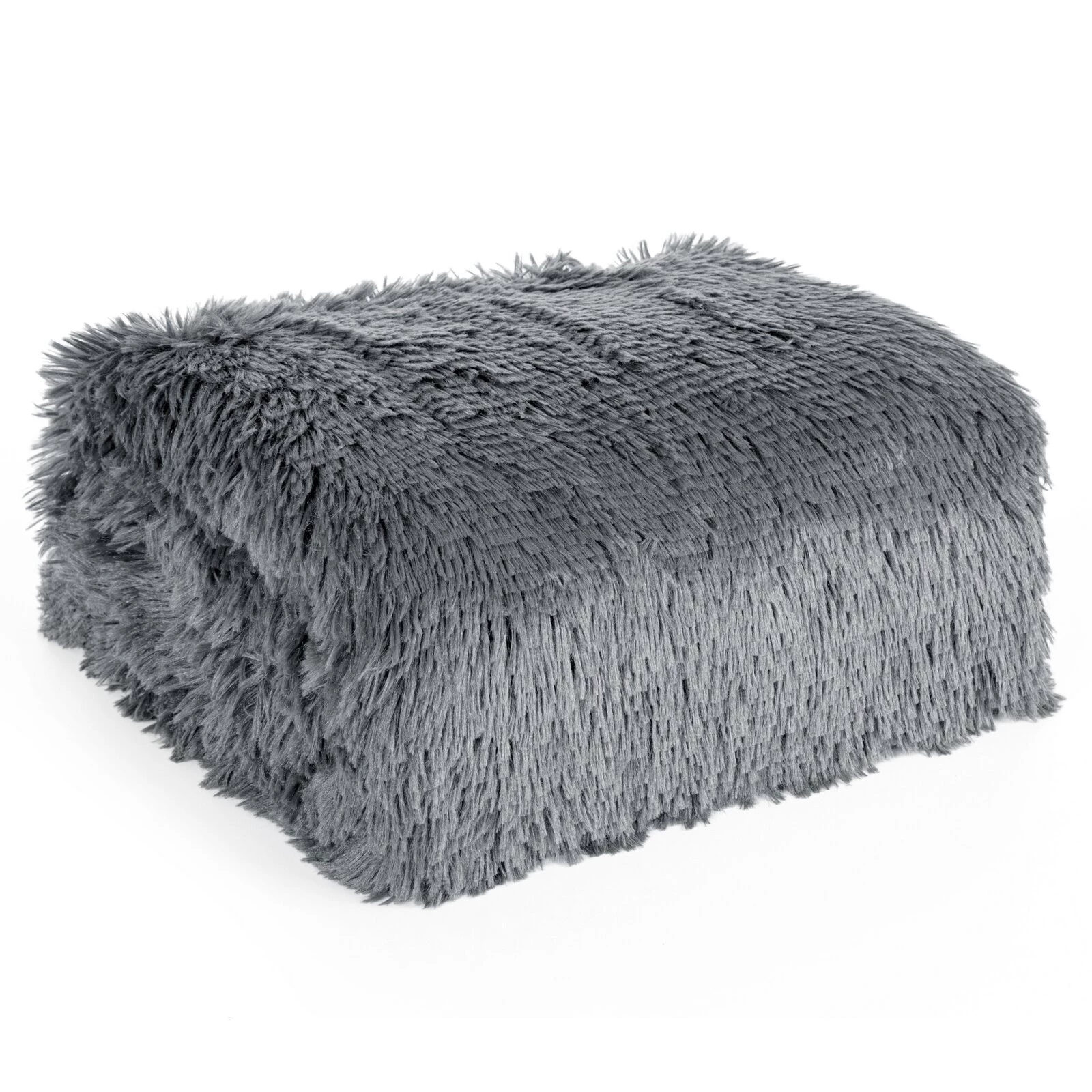 Ciepły i miły w dotyku koc o strukturze futra szerokość: 170 cm, długość: 210 cm, kolor: szary, Gramatura: 240 GSM GSM, Skład: 100% poliester