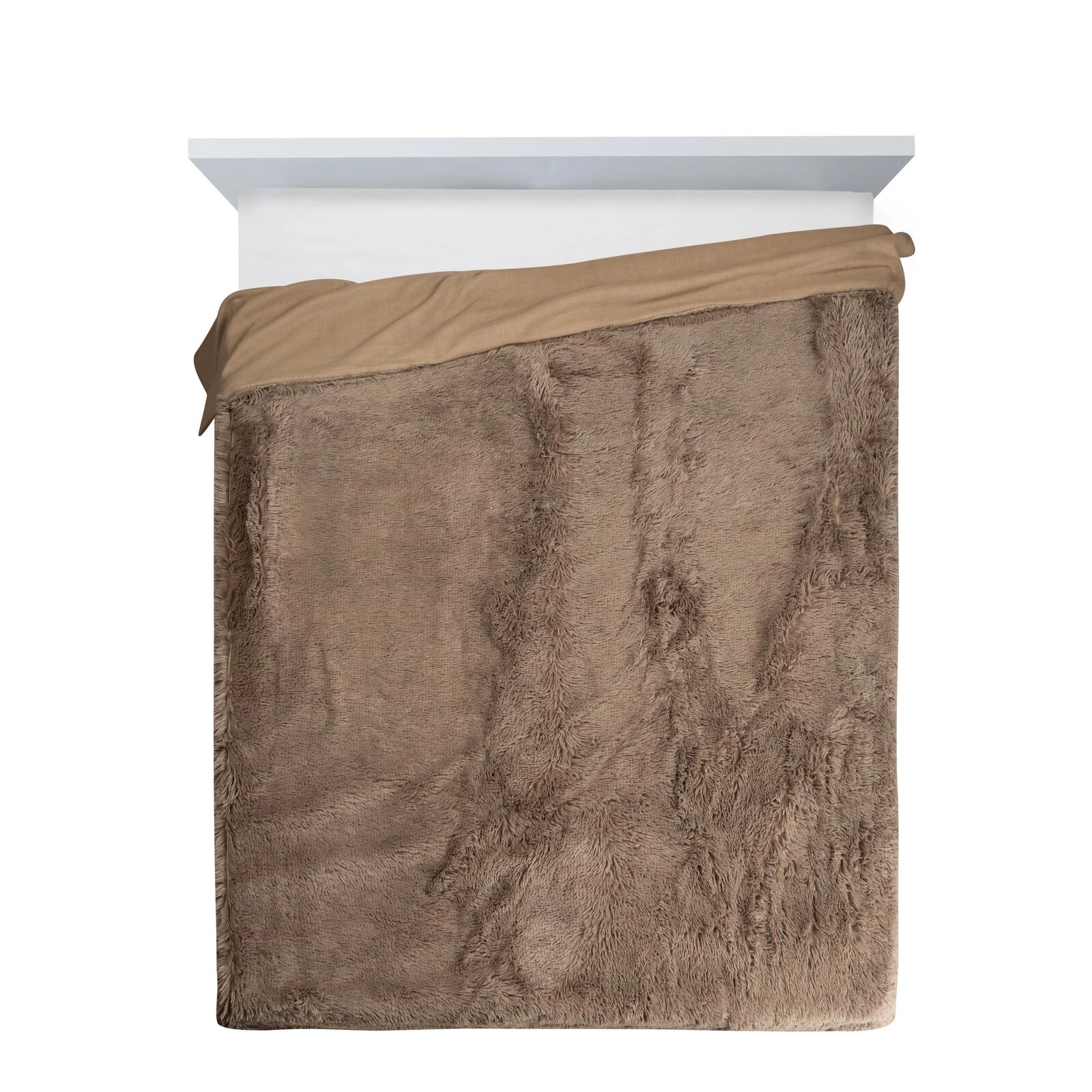 - Ciepły i miły w dotyku koc o strukturze futra szerokość: 150 cm, długość: 200 cm, kolor: ciemnobeżowy, Gramatura: 240 GSM GSM, Skład: 100% poliester