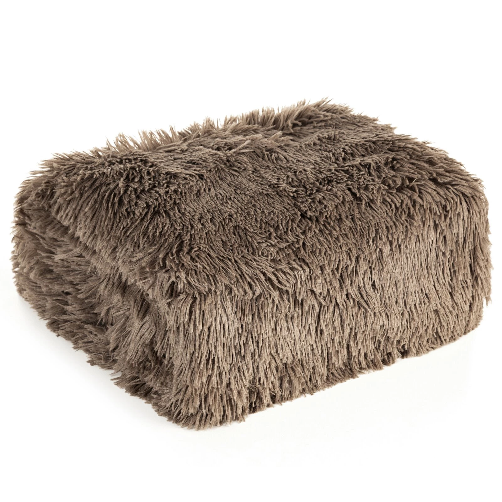 Ciepły i miły w dotyku koc o strukturze futra szerokość: 150 cm, długość: 200 cm, kolor: ciemnobeżowy, Gramatura: 240 GSM GSM, Skład: 100% poliester