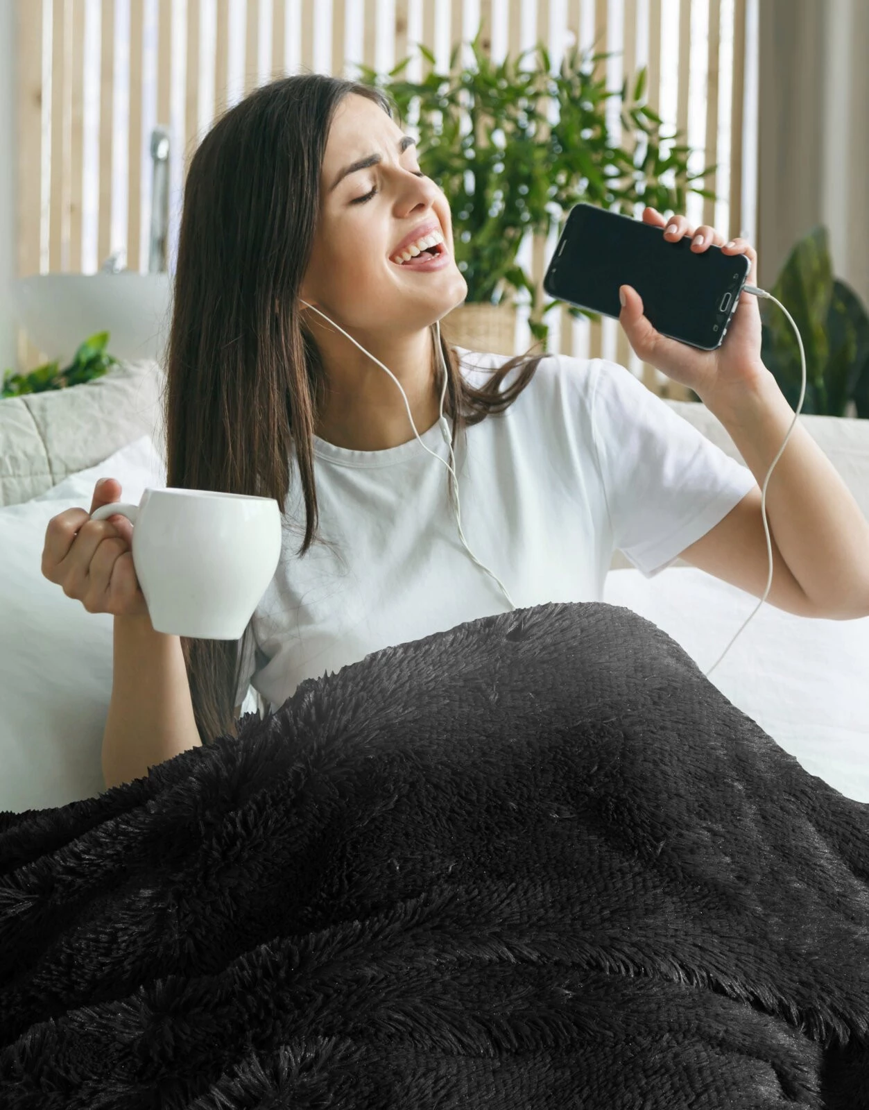 Ciepły i miły w dotyku koc o strukturze futra szerokość: 150 cm, długość: 200 cm, kolor: czarny, Gramatura: 240 GSM GSM, Skład: 100% poliester