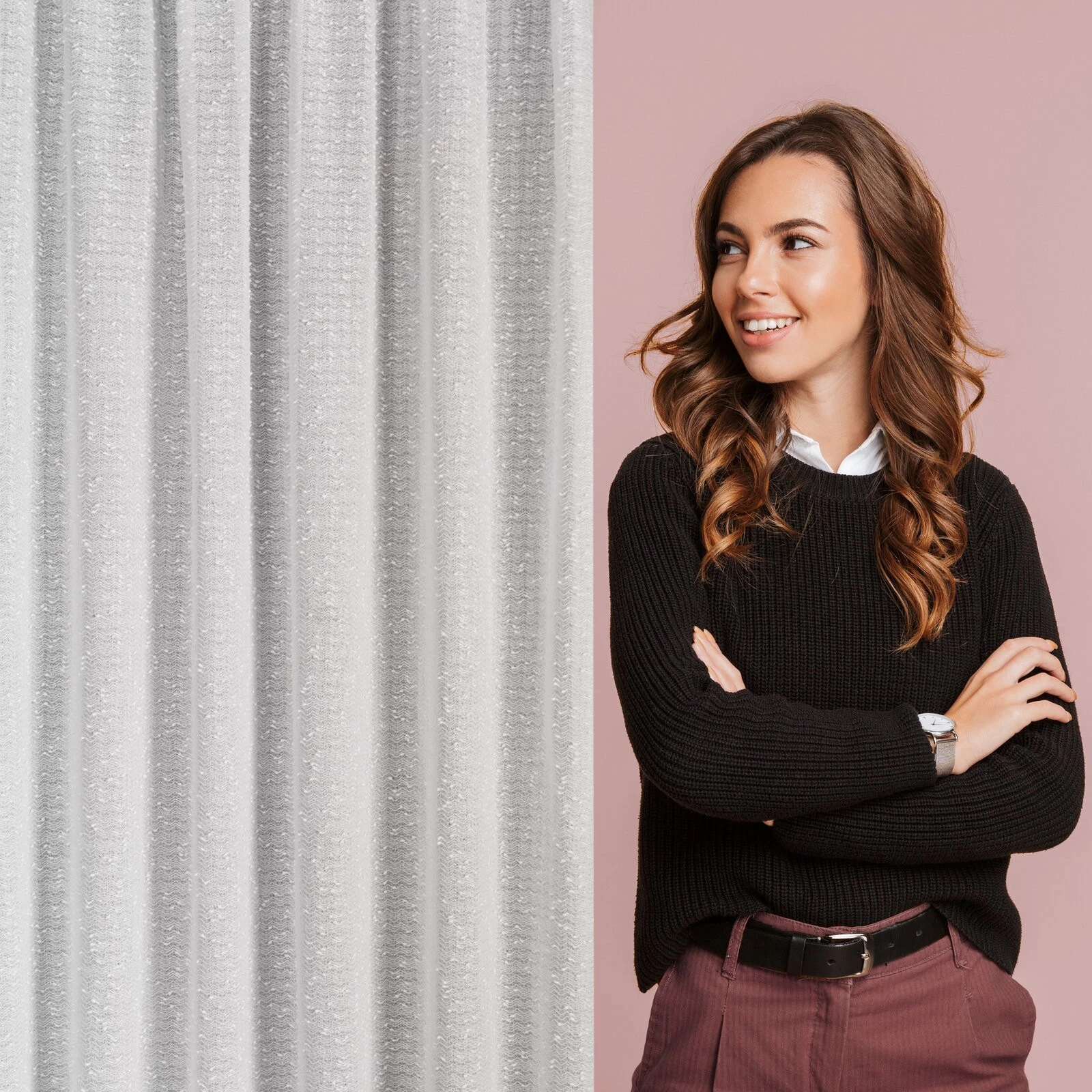 Zasłona z tkaniny typu bukla z błyszczącą transparentną nicią szerokość: 135 cm, długość: 270 cm, kolor: biały, Gramatura: 140 GSM, Skład: 100% poliester