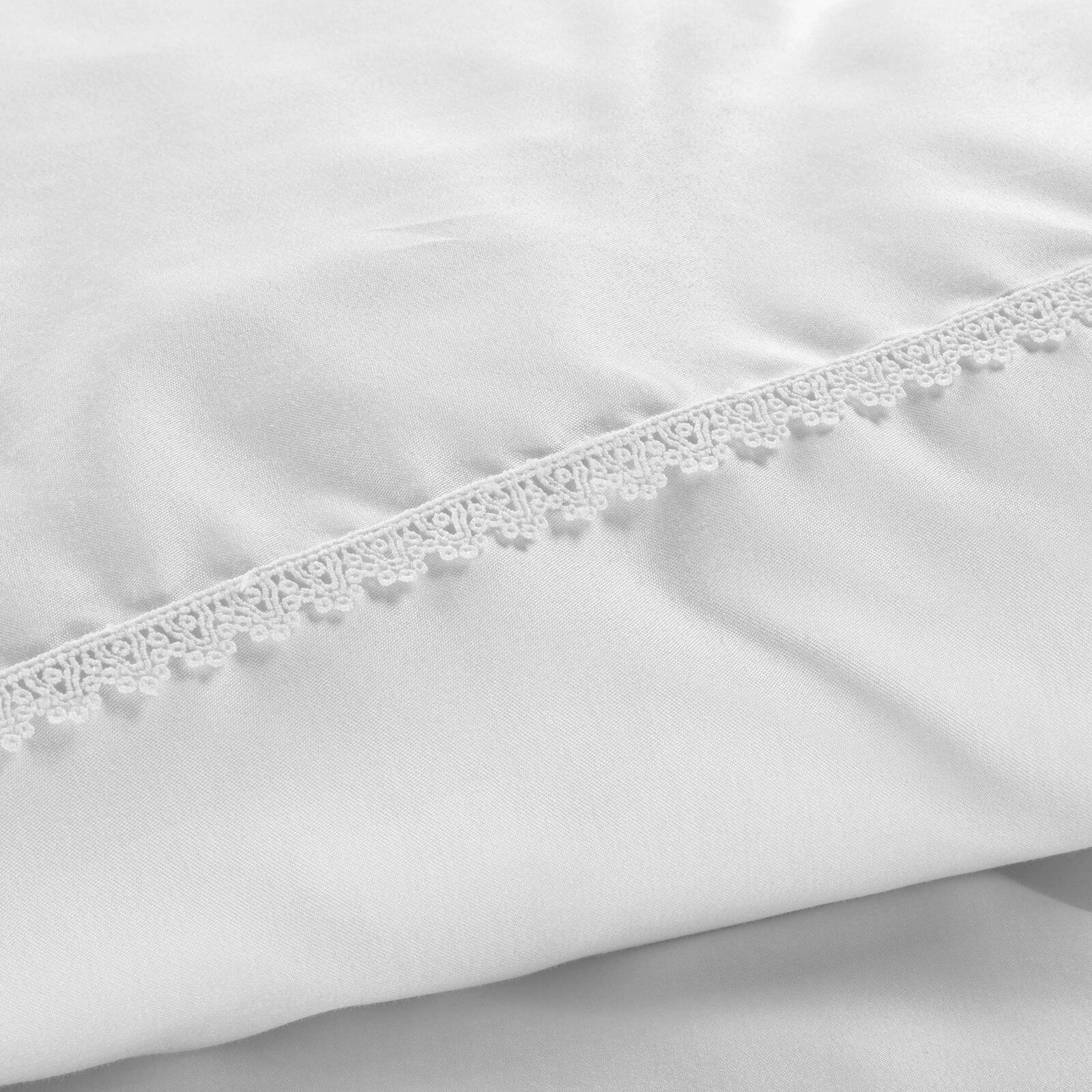 - Pościel o splocie satynowym , zdobiona koronką szerokość: 160 cm, długość: 200 cm, kolor: biały, Gramatura: 125 GSM, Skład: 55% bawełna, 45% poliester