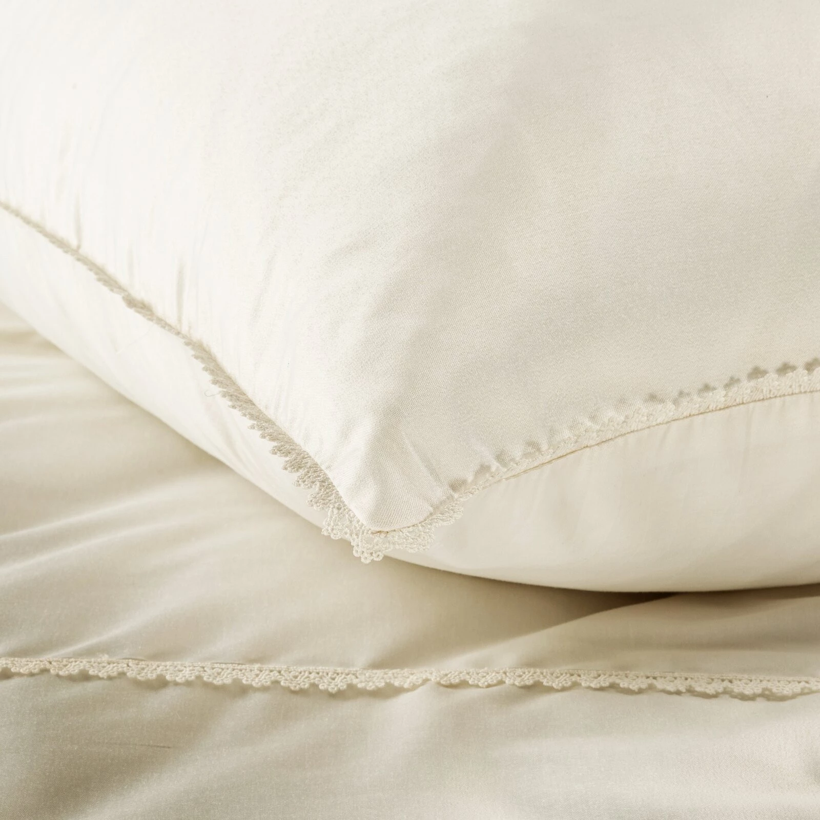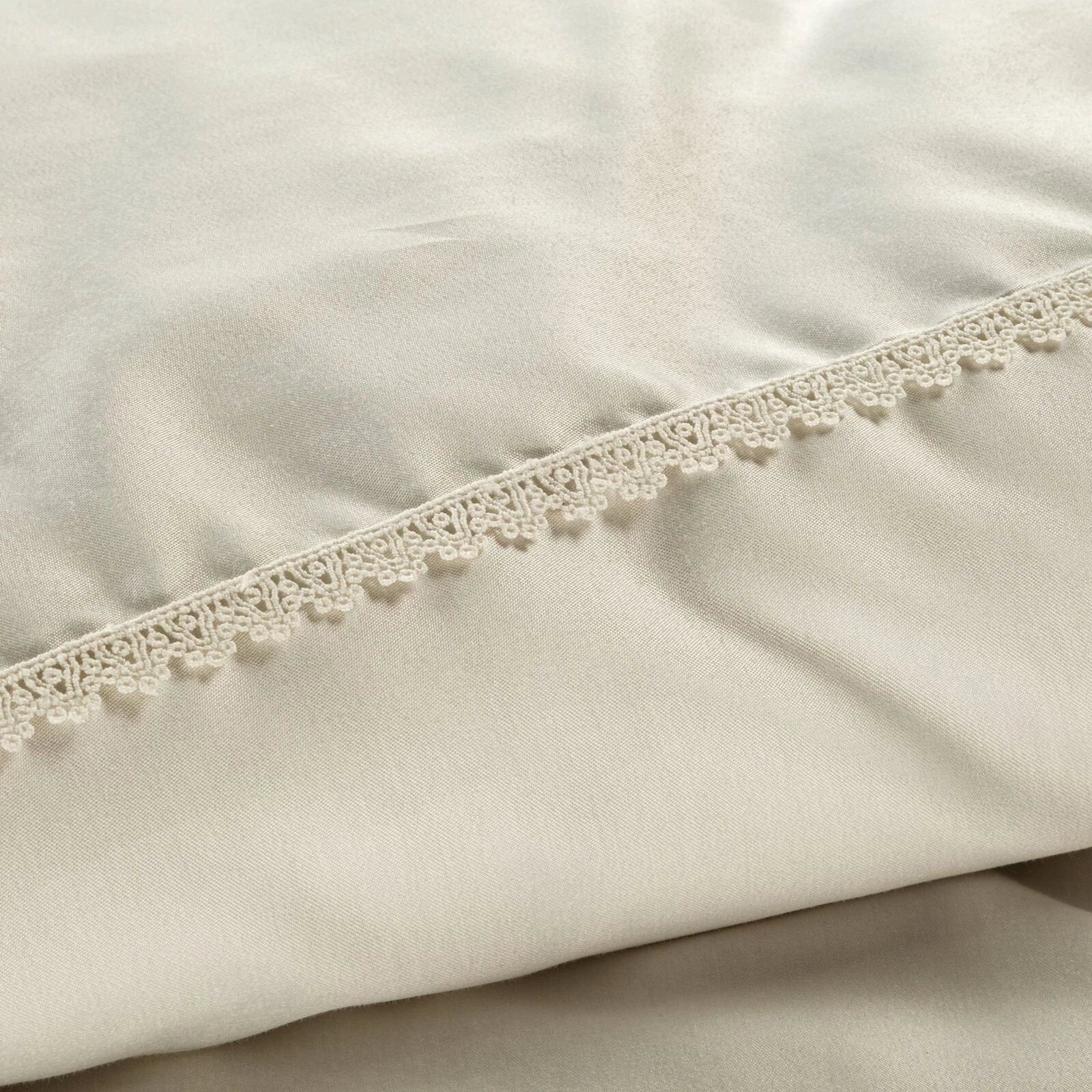 Pościel o splocie satynowym , zdobiona koronką szerokość: 220 cm, długość: 200 cm, kolor: kremowy, Gramatura: 125 GSM, Skład: 55% bawełna, 45% poliester