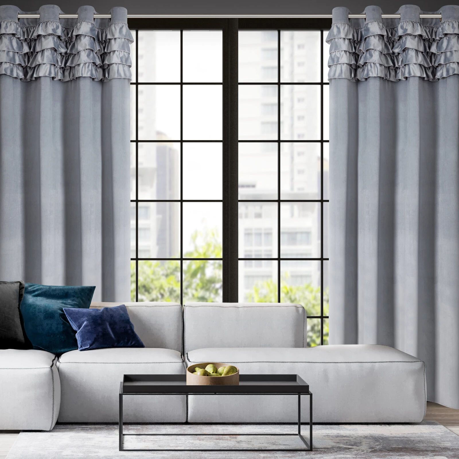 Zasłona welwetowa z falbanami szerokość: 140 cm, długość: 250 cm, kolor: szary, Gramatura: 200 GSM, Skład: 100% poliester
