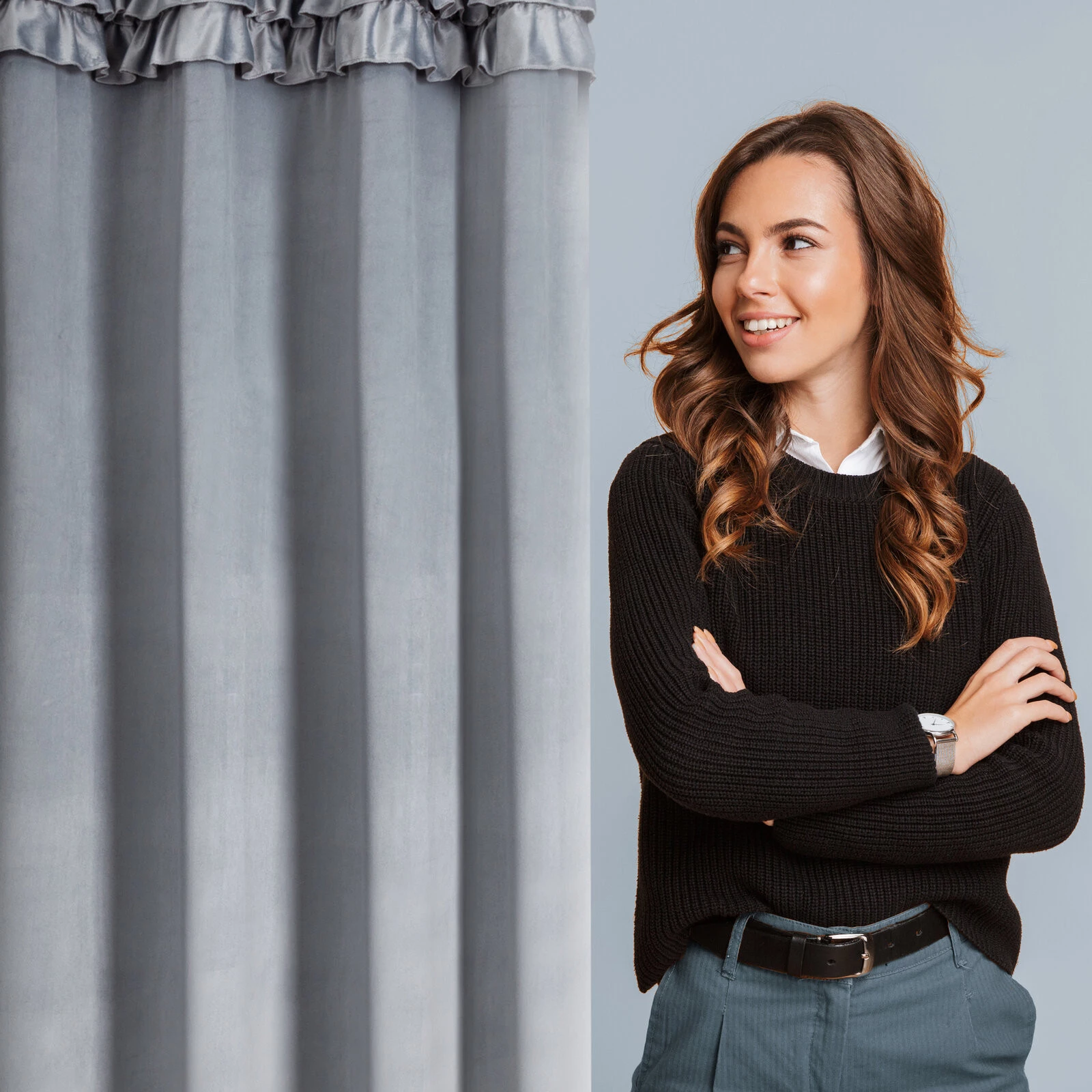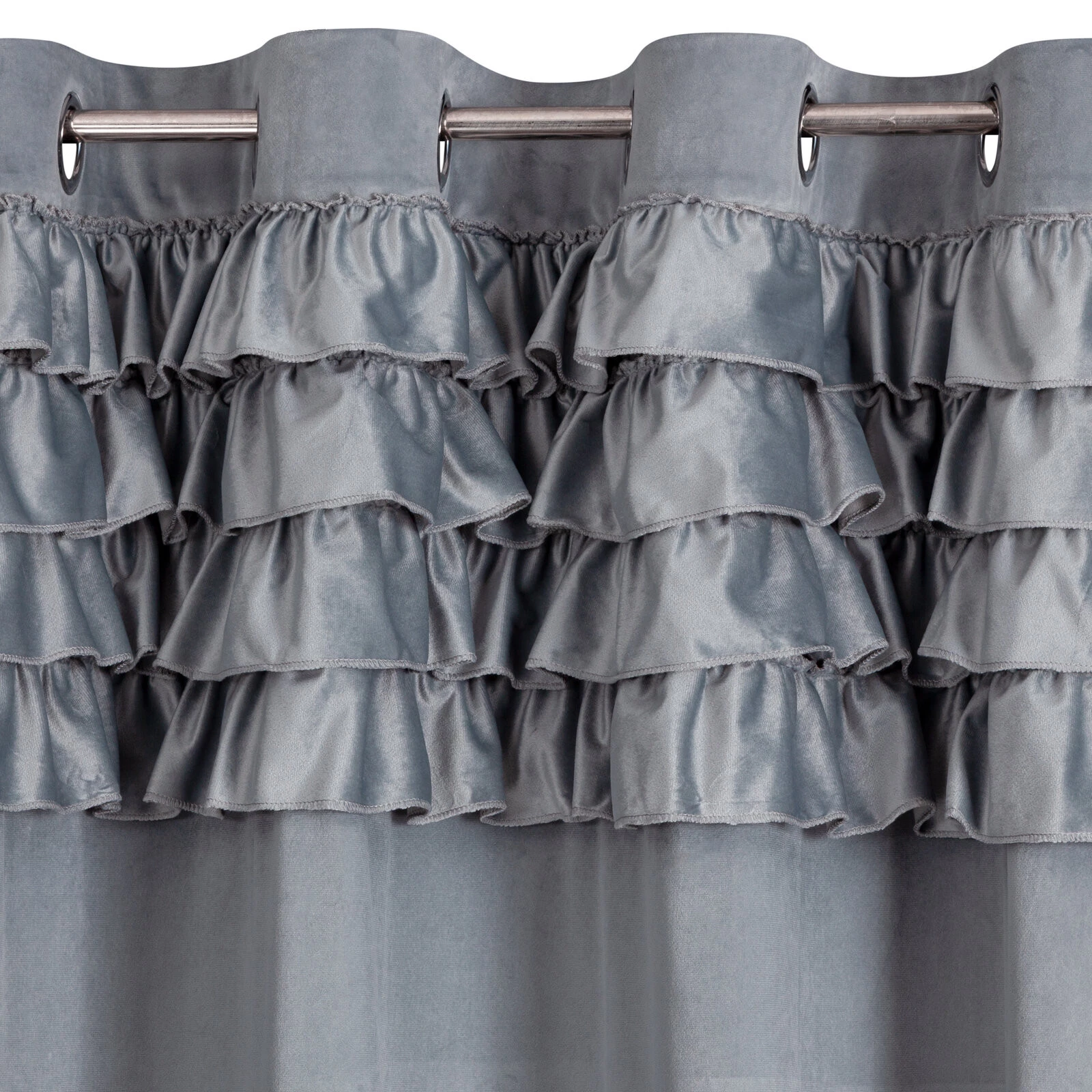 - Zasłona welwetowa z falbanami szerokość: 140 cm, długość: 250 cm, kolor: szary, Gramatura: 200 GSM, Skład: 100% poliester