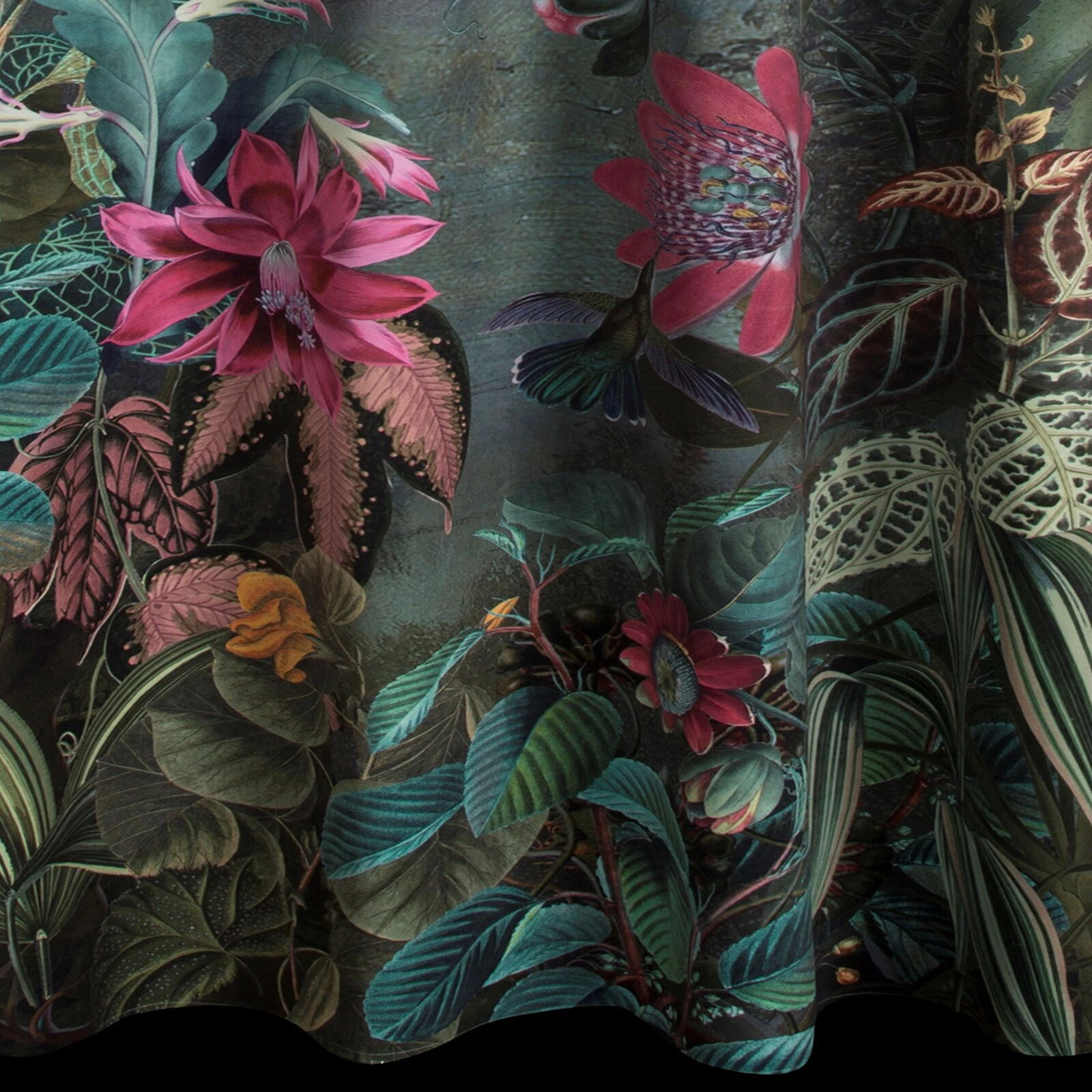 - Gotowa zasłona welwetowa z motywem botanicznym szerokość: 140 cm, długość: 250 cm, kolor: ciemnozielony, Gramatura: 200 GSM, Skład: 100% poliester