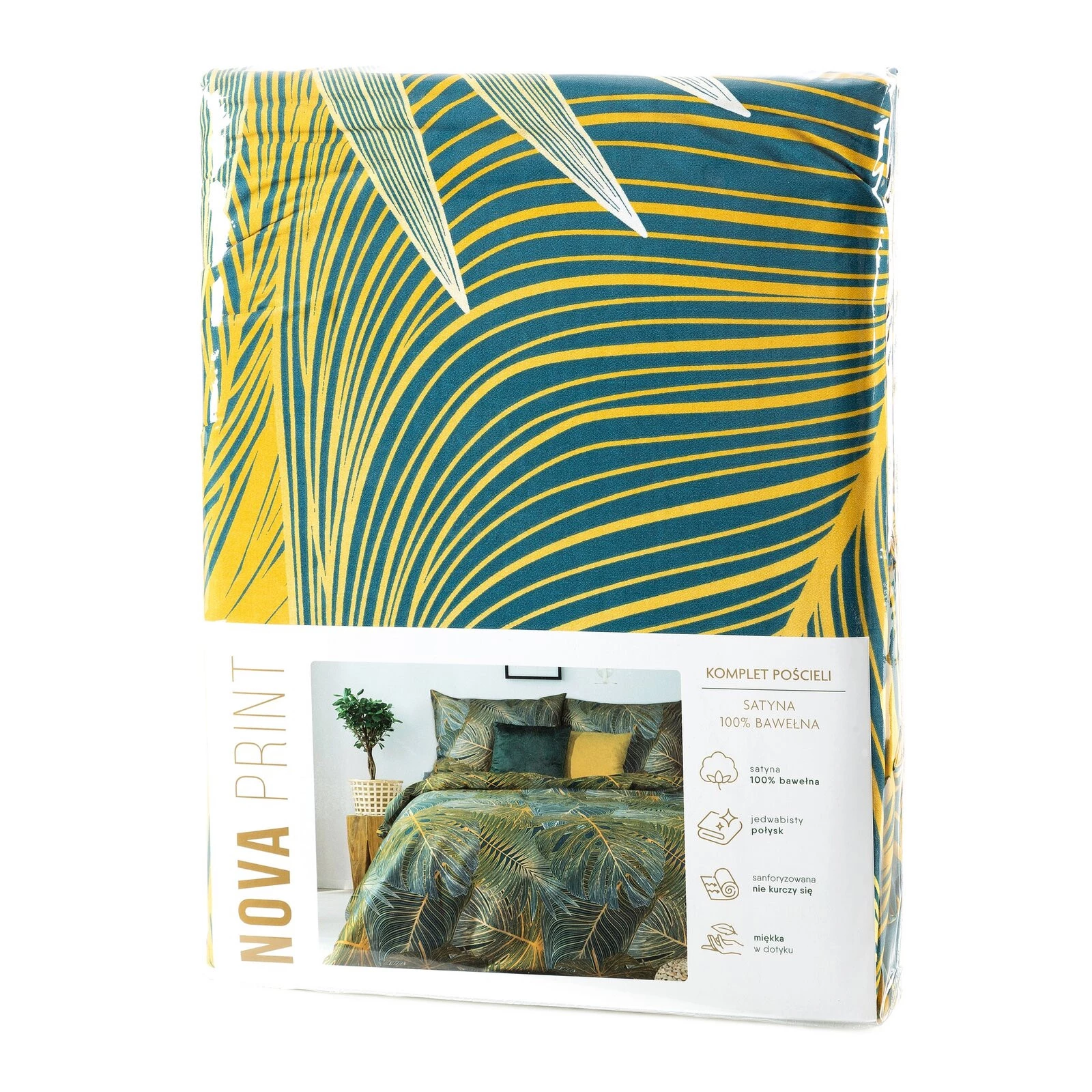 Komplet pościeli z satyny bawełnianej z nadrukiem szerokość: 160 cm, długość: 200 cm, kolor: zielony, Gramatura: 125 GSM, Skład: satyna, 100% bawełna