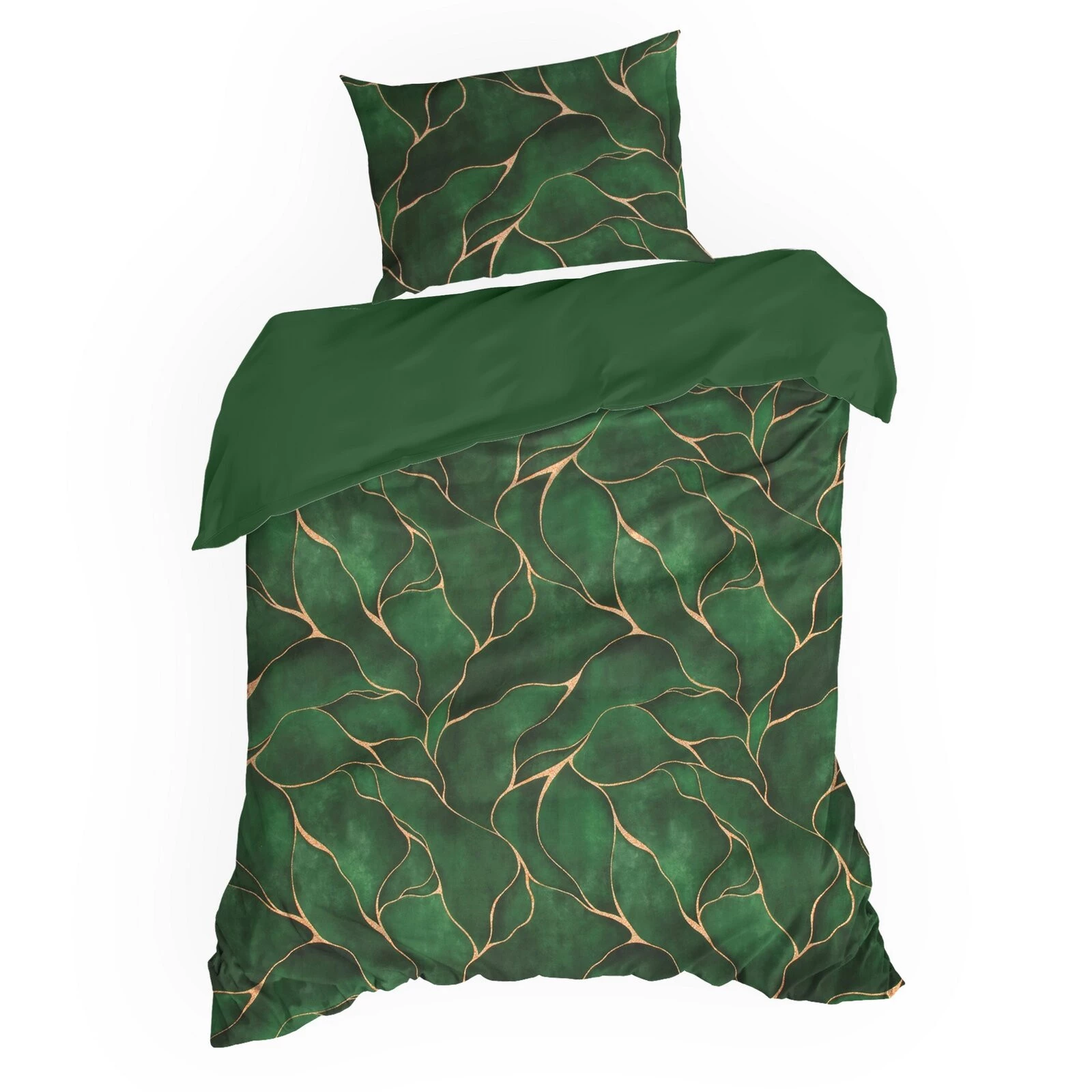 Komplet pościeli z satyny bawełnianej z nadrukiem, pakowana w pudełku szerokość: 220 cm, długość: 200 cm, kolor: zielony, Gramatura: 125 GSM, Skład: satyna, 100% bawełna