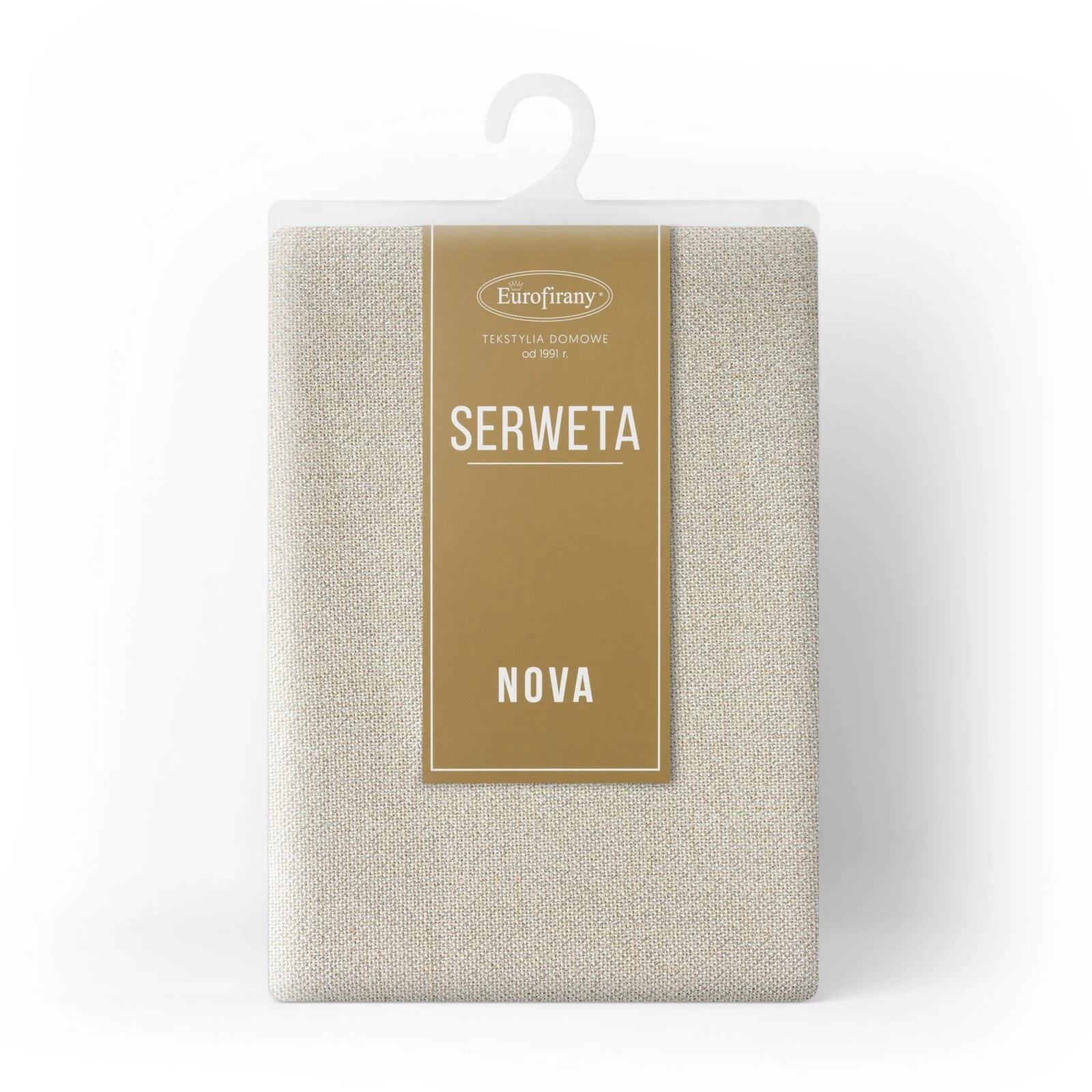 - Serweta zdobiona kantą i błyszczącą nicią szerokość: 85 cm, długość: 85 cm, kolor: beżowy, Gramatura: 260 GSM, Skład: 100% poliester