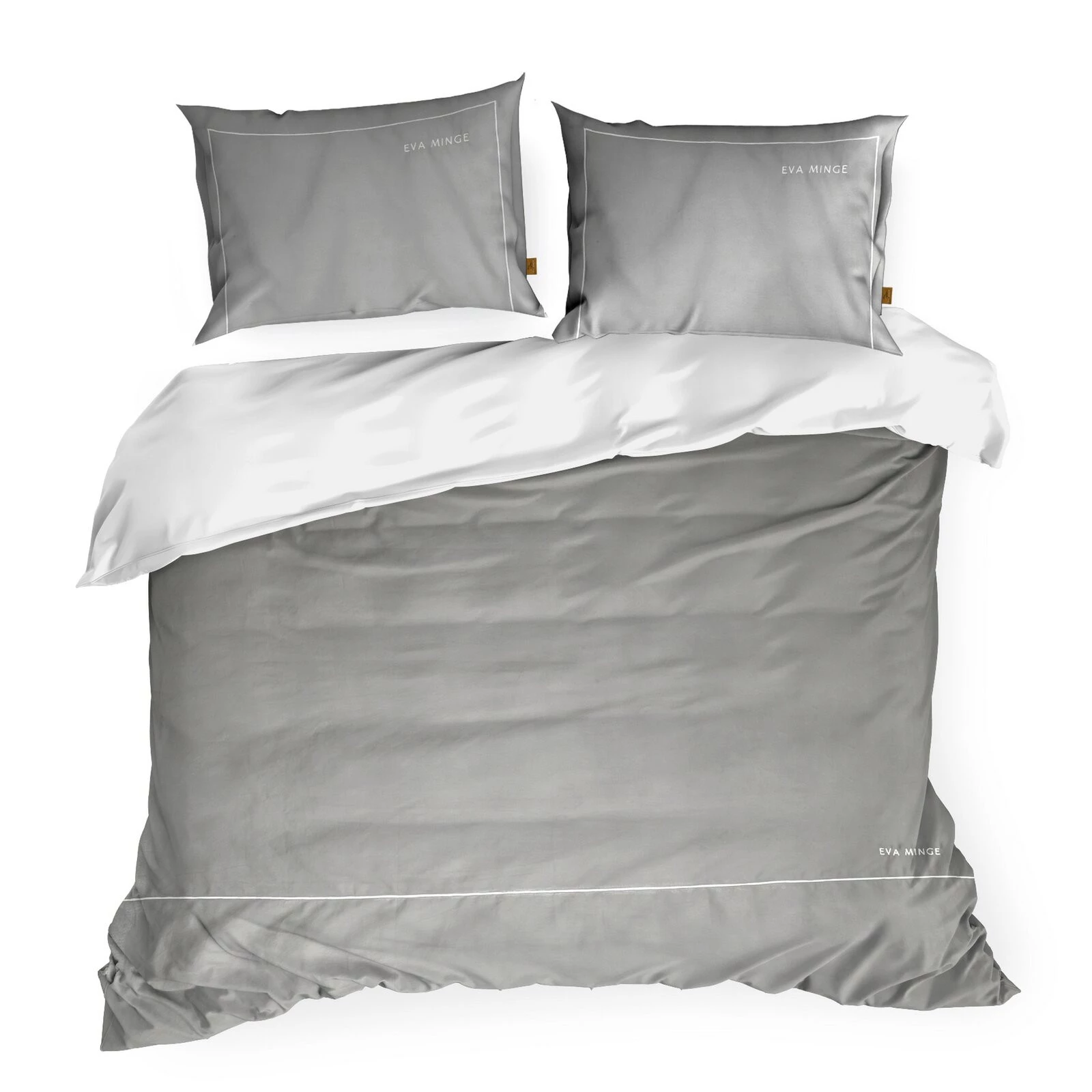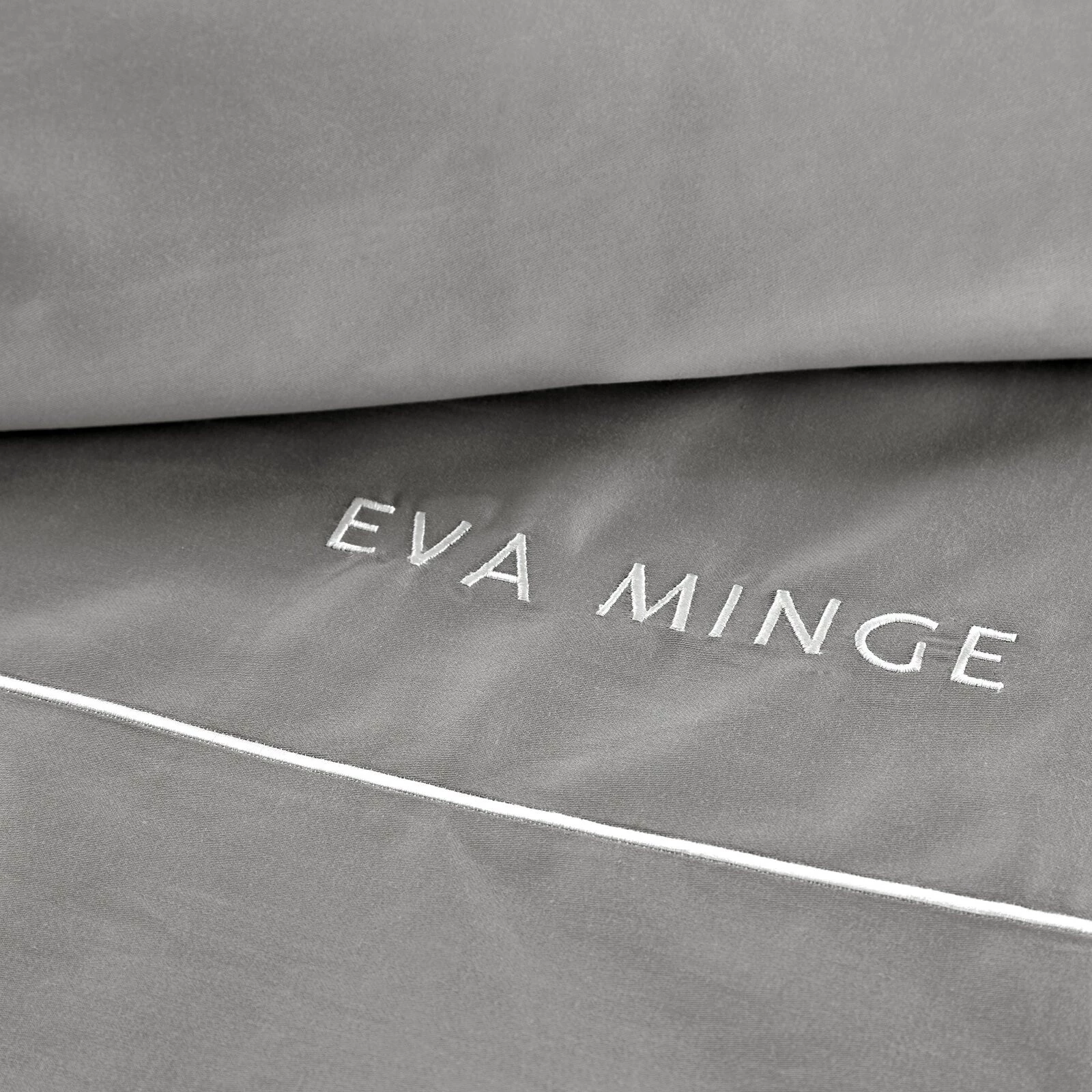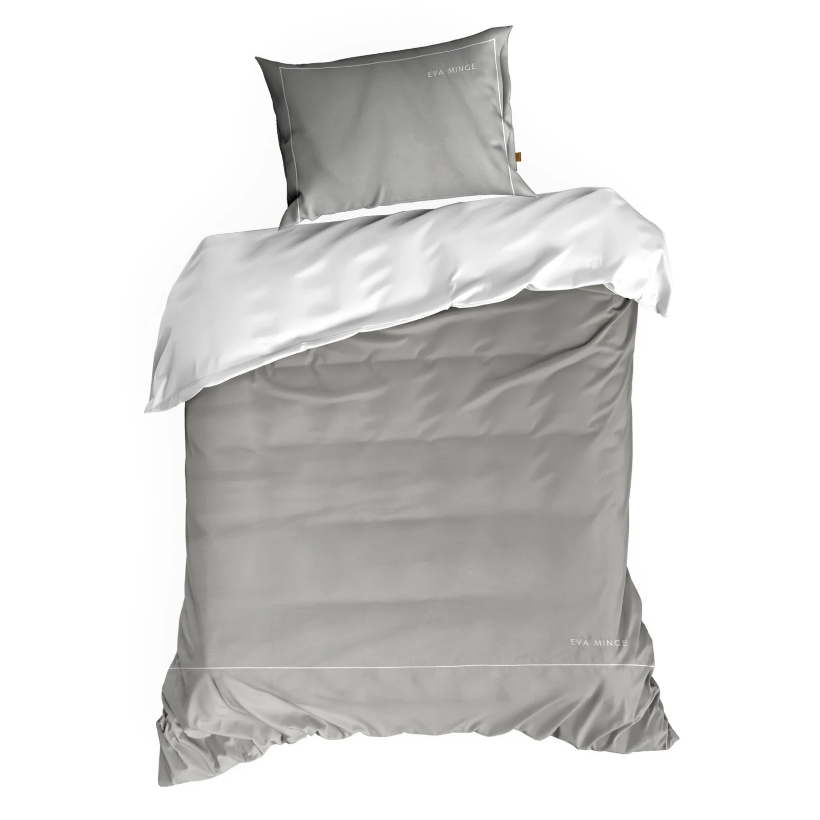 Komplet ekskluzywnej, designerskiej pościeli z satyny bawełnianej z kolekcji polecanej przez Eva Minge. Zapinana na zamek błyskawiczny. Precyzyjne wykonanie. szerokość: 160 cm, długość: 200 cm, kolor: szary, Gramatura: 125 GSM, Skład: makosatyna, 100% bawełna