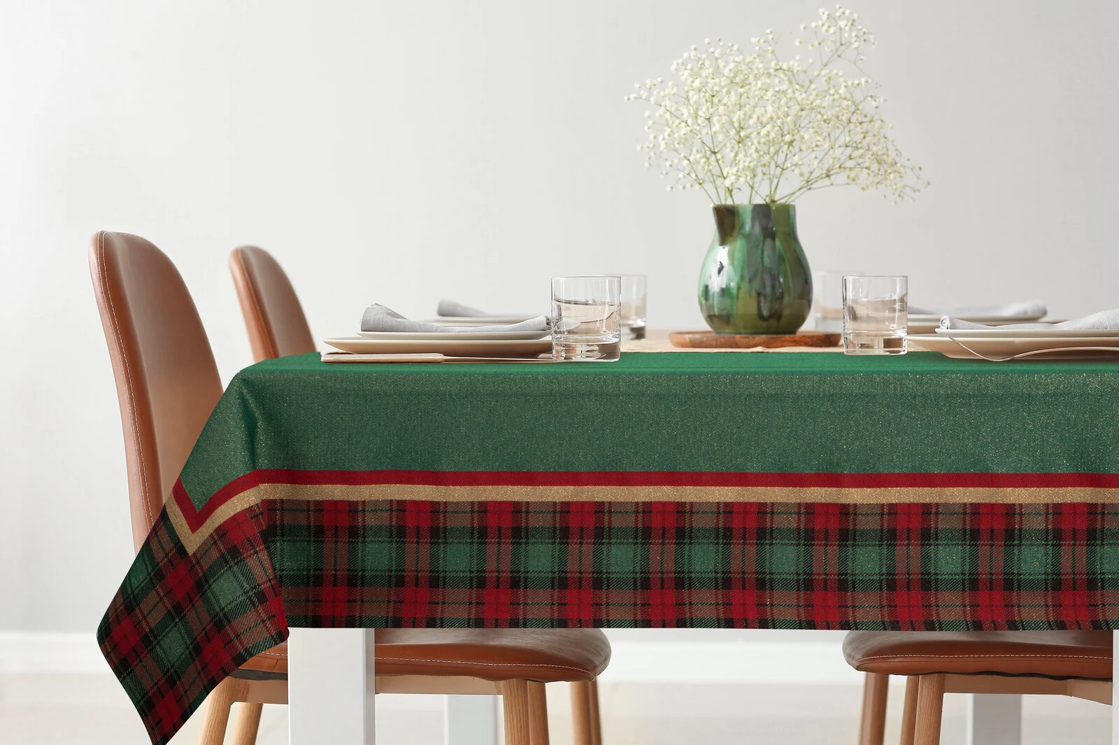 - Obrus gobelinowy szerokość: 90 cm, długość: 90 cm, kolor: zielony, Gramatura: 340 GSM, Skład: 53% poliester, 40% bawełna, 4% nić metaliczna, 3% akryl