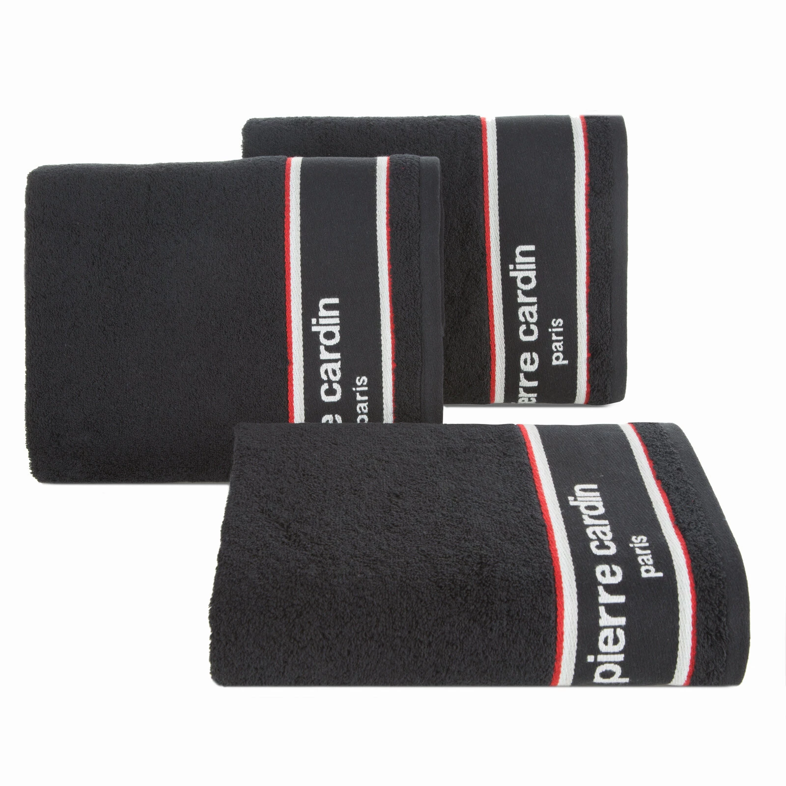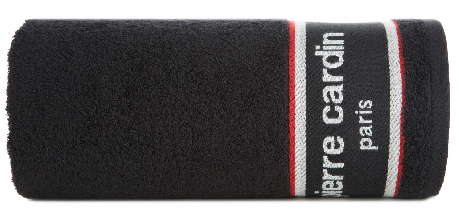 Ręcznik z kolekcji pierre cardin szerokość: 50 cm, długość: 90 cm, kolor: czarny, Gramatura: 450 GSM, Skład: 100% bawełna; cześć ozdobna: 64% bawełna, 36% poliester