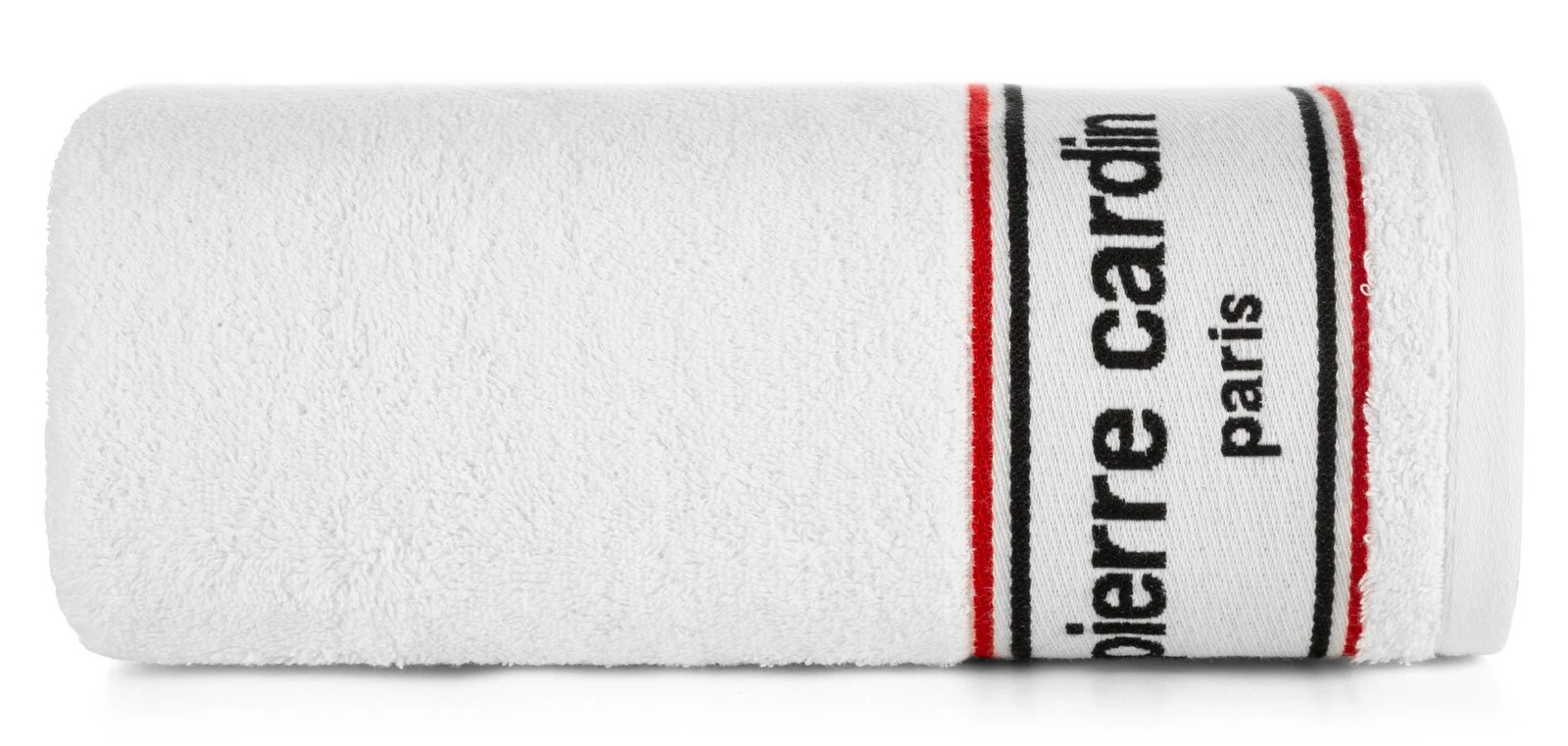 Ręcznik z kolekcji pierre cardin szerokość: 50 cm, długość: 90 cm, kolor: biały, Gramatura: 450 GSM, Skład: 100% bawełna; cześć ozdobna: 64% bawełna, 36% poliester