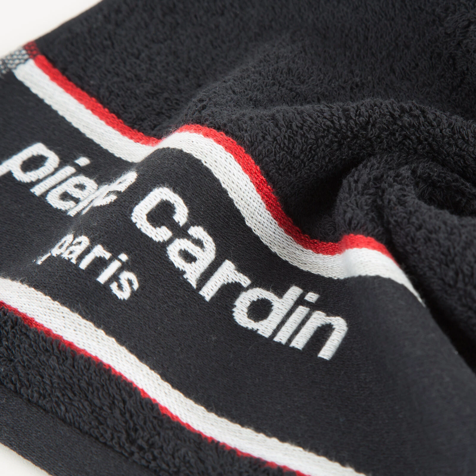 Ręcznik z kolekcji pierre cardin szerokość: 70 cm, długość: 140 cm, kolor: czarny, Gramatura: 450 GSM, Skład: 100% bawełna; cześć ozdobna: 64% bawełna, 36% poliester
