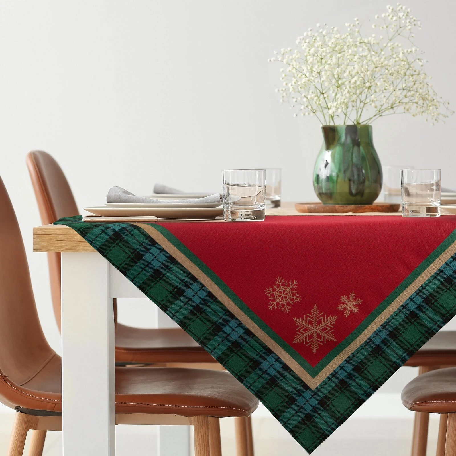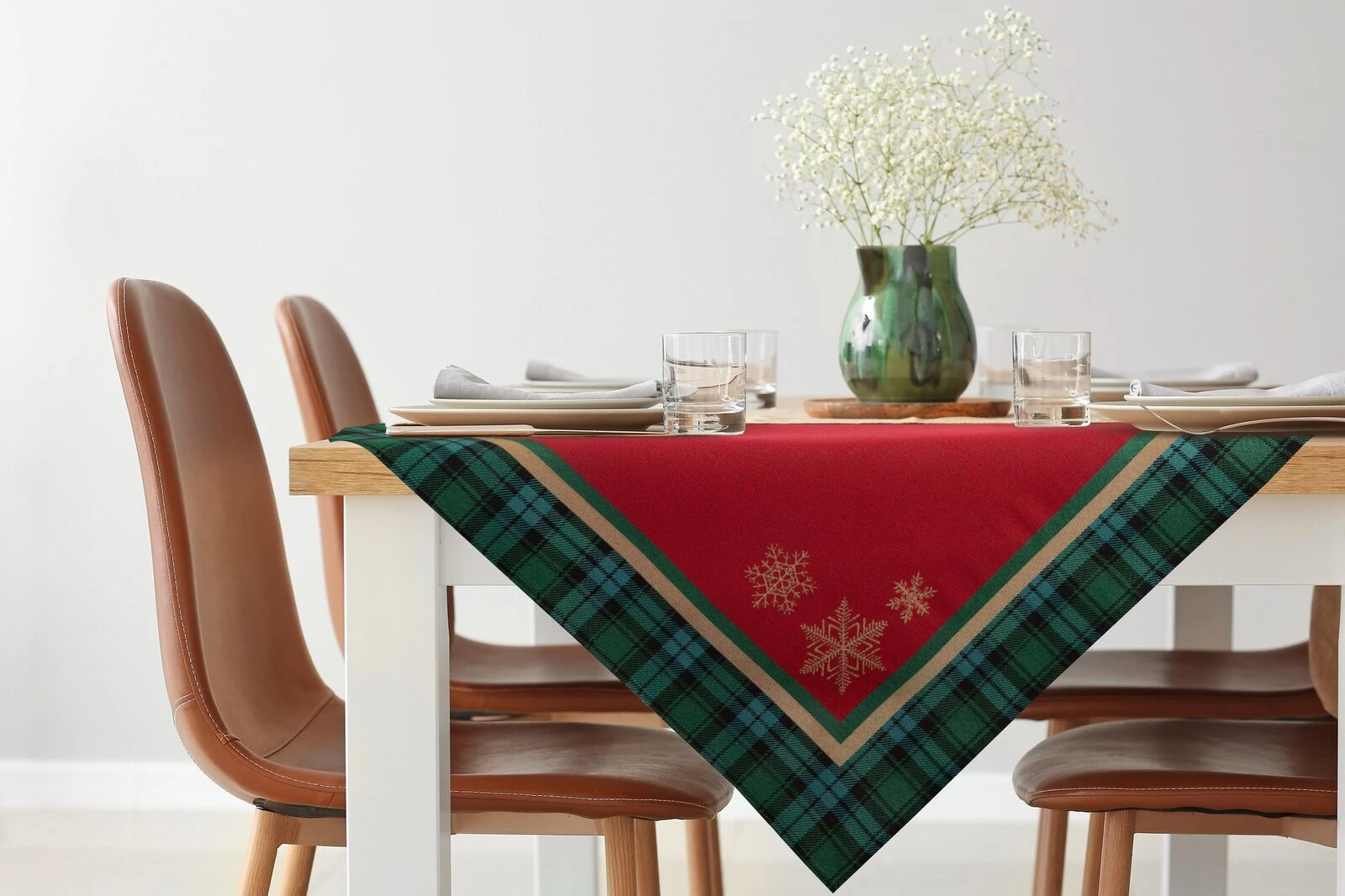 - Obrus gobelinowy szerokość: 90 cm, długość: 90 cm, kolor: czerwony, Gramatura: 410 GSM, Skład: 53% poliester, 40% bawełna, 4% nić metaliczna, 3% akryl