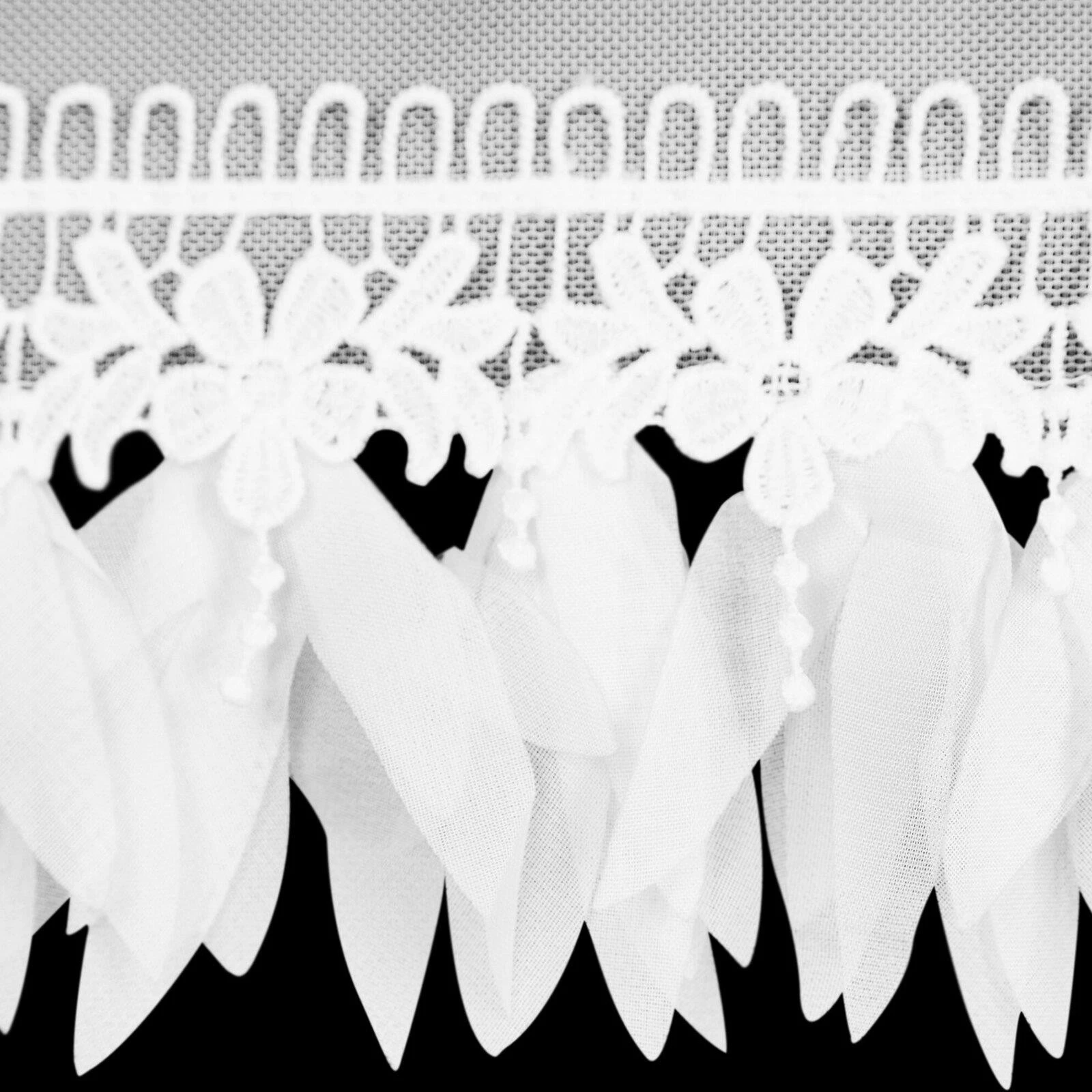 Firana gotowa zdobiona aplikacją szerokość: 300 cm, długość: 150 cm, kolor: biały, Gramatura: 70 GSM, Skład: 100% poliester