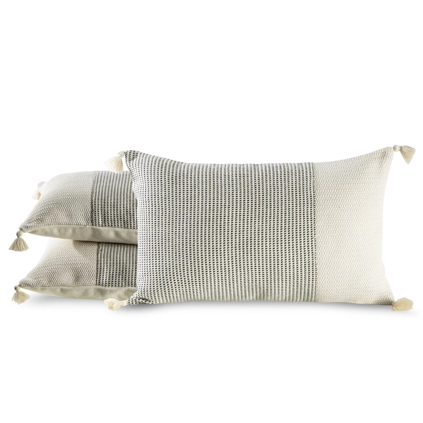 - Poszewka dekoracyjna w stylu boho z pomponami szerokość: 45 cm, długość: 45 cm, kolor: kremowy, Gramatura: 850 GSM, Skład: 100% poliester