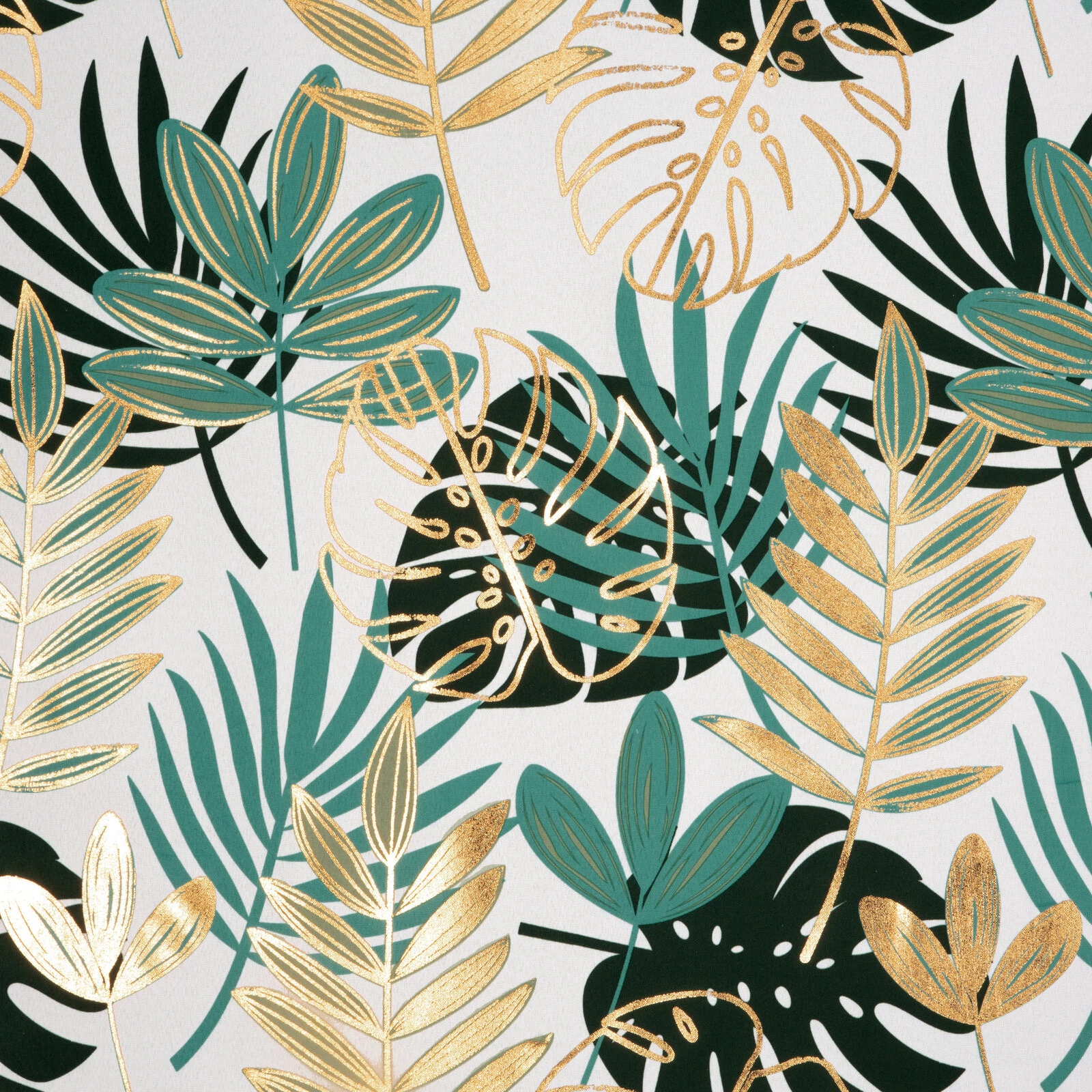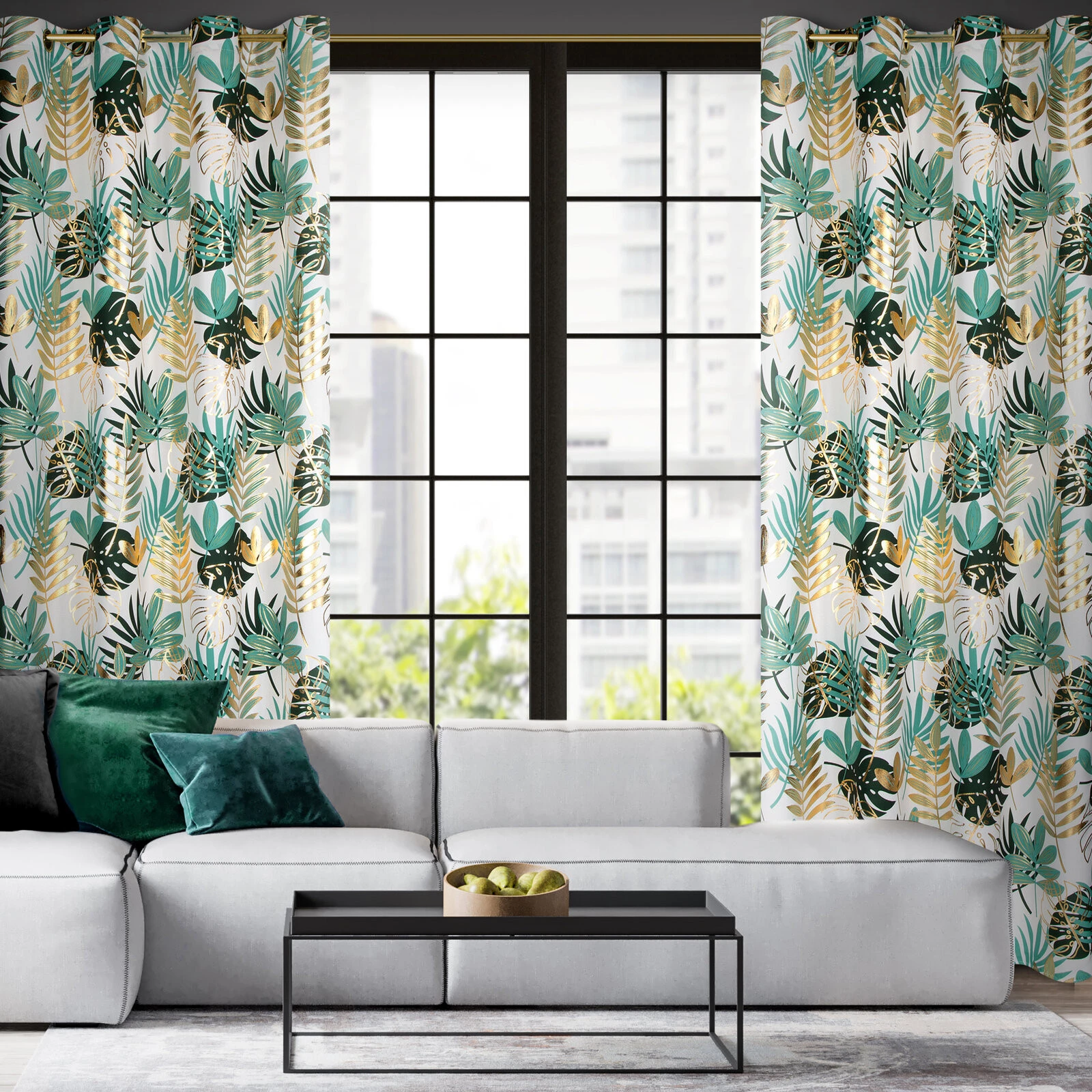 - Zasłona z motywem botanicznym z błyszczącym nadrukiem szerokość: 140 cm, długość: 250 cm, kolor: biały, Gramatura: 135 GSM, Skład: 100% poliester