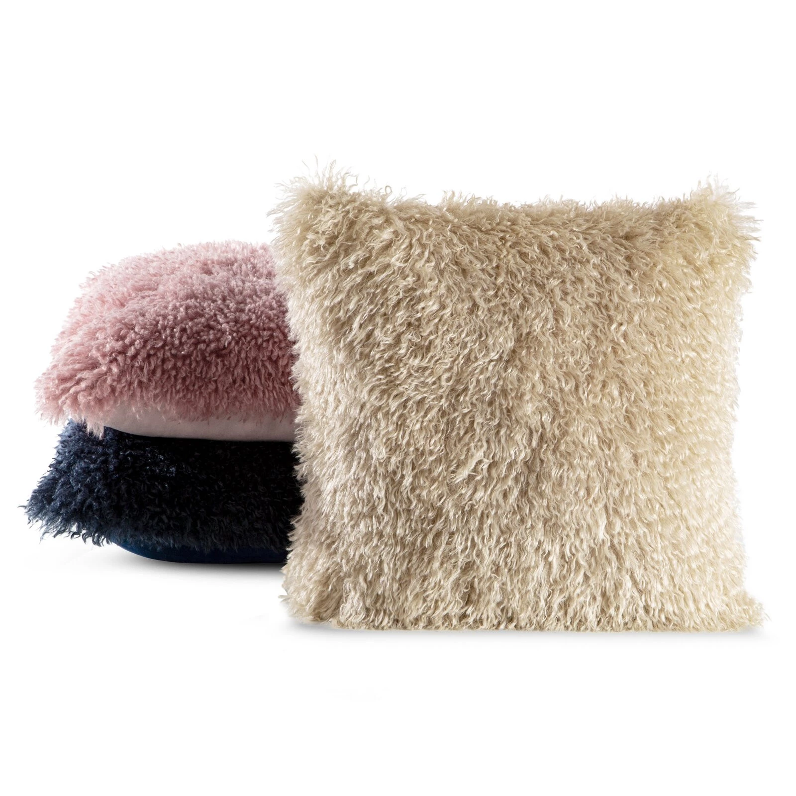 Poszewka welwetowa z ozdobnym włochaczem szerokość: 45 cm, długość: 45 cm, kolor: pudrowy róż, Gramatura: 600 GSM, Skład: 100% poliester