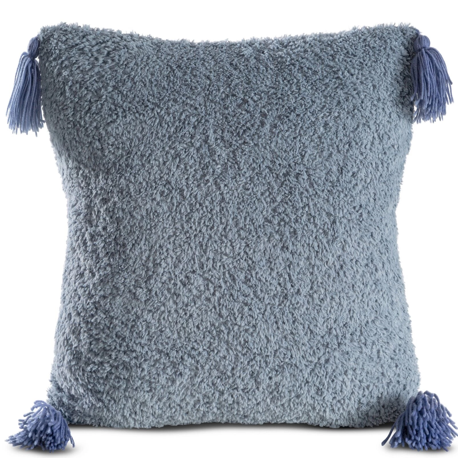 - Poszewka dekoracyjna z pomponami szerokość: 45 cm, długość: 45 cm, kolor: niebieski, Gramatura: 310 GSM, Skład: 100% poliester