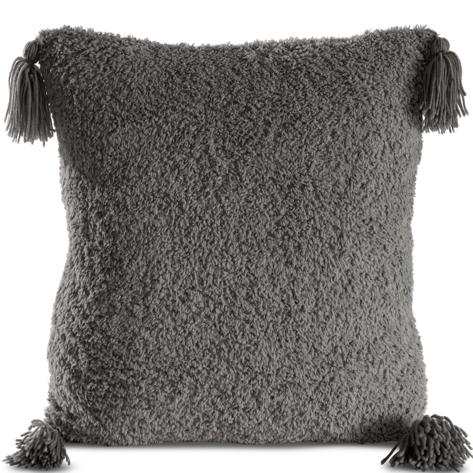 Poszewka dekoracyjna z pomponami szerokość: 45 cm, długość: 45 cm, kolor: stalowy, Gramatura: 310 GSM, Skład: 100% poliester