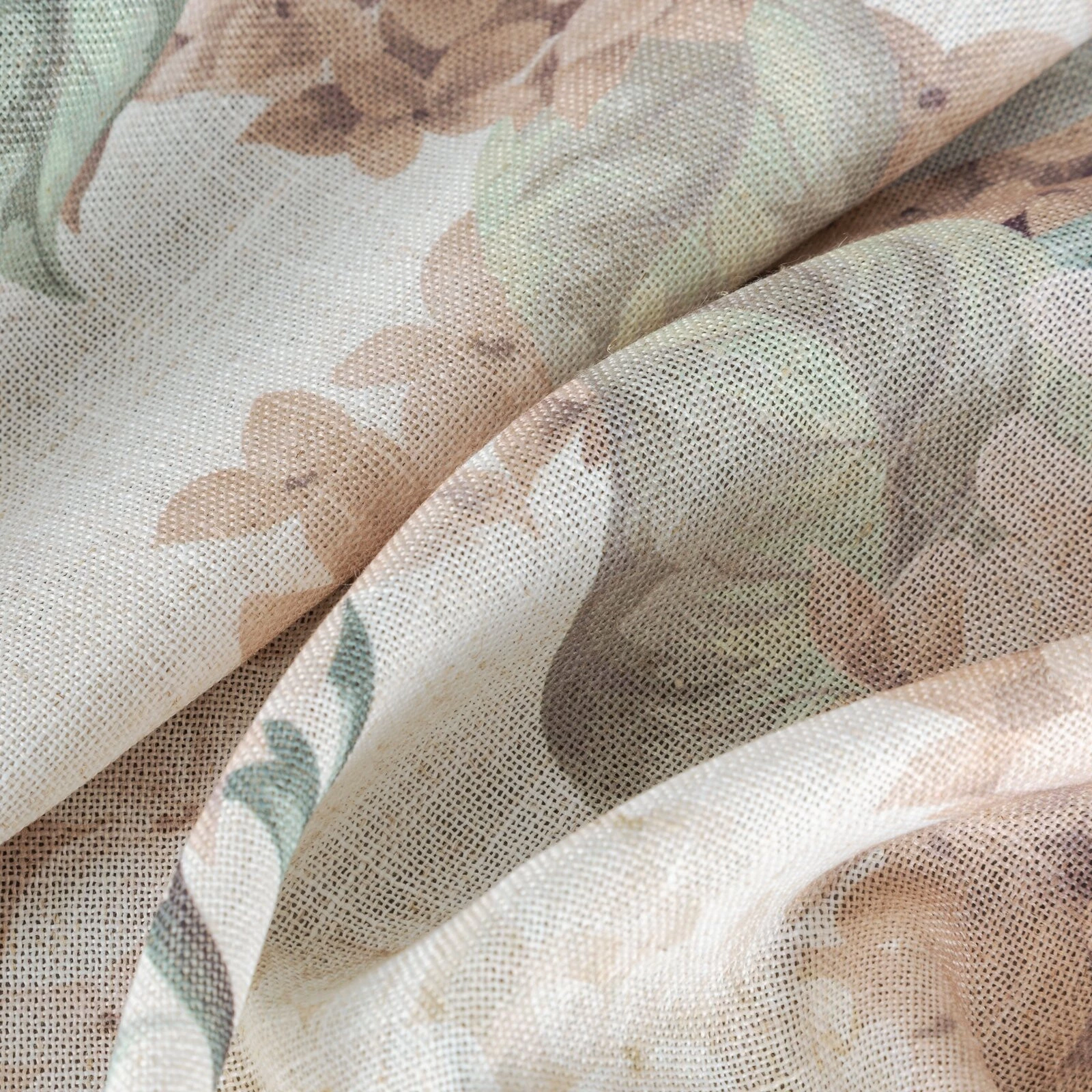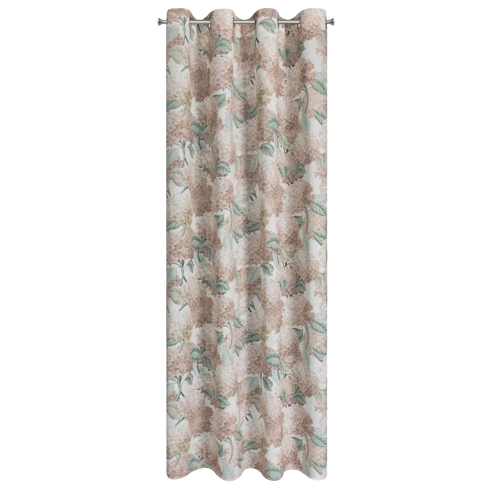 Zasłona gotowa z motywem kwiatów, z domieszką lnu szerokość: 140 cm, długość: 250 cm, kolor: naturalny, Gramatura: 220 GSM, Skład: 15% len, 85% poliester
