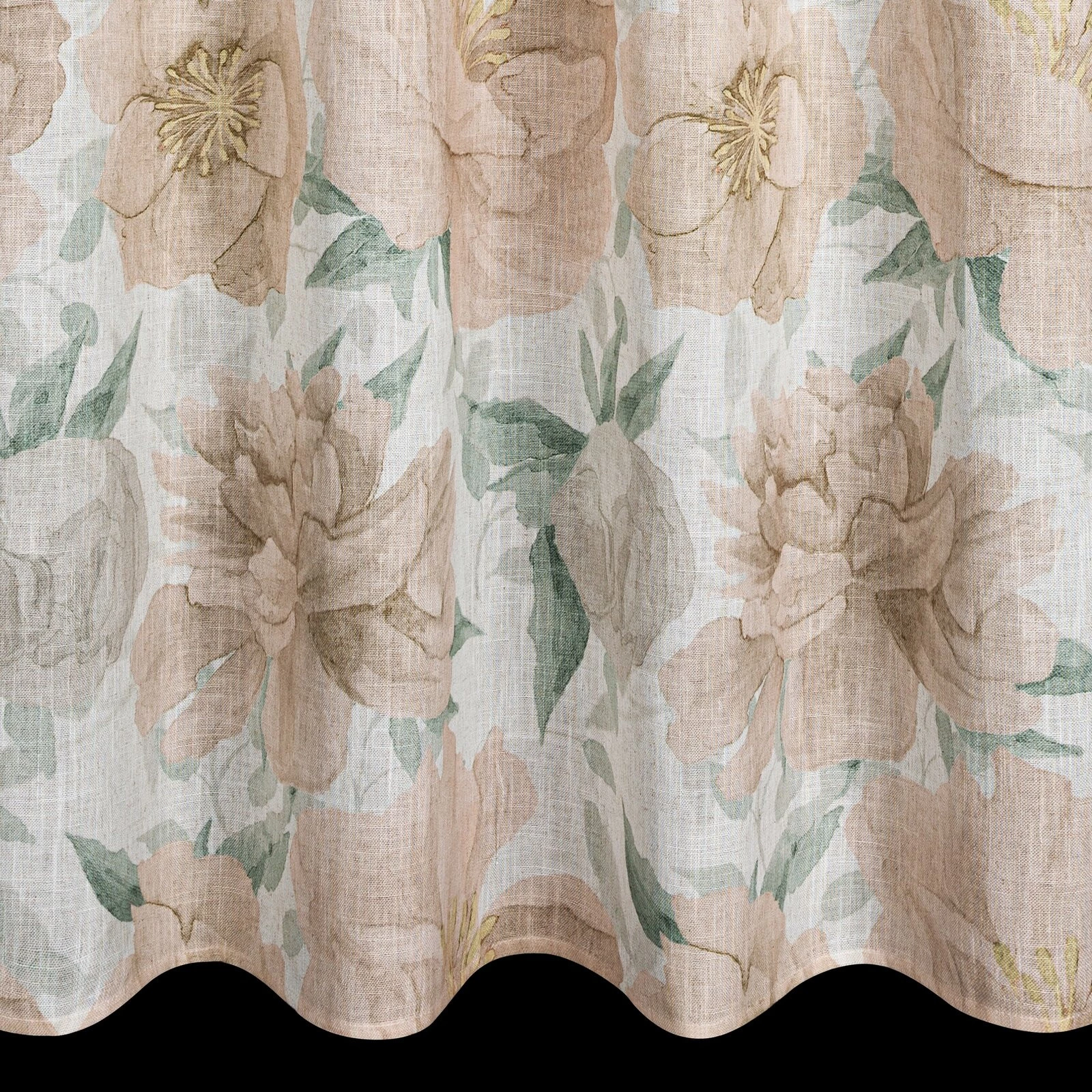 Zasłona gotowa z motywem kwiatów, z domieszką lnu szerokość: 140 cm, długość: 250 cm, kolor: naturalny, Gramatura: 220 GSM, Skład: 15% len, 85% poliester