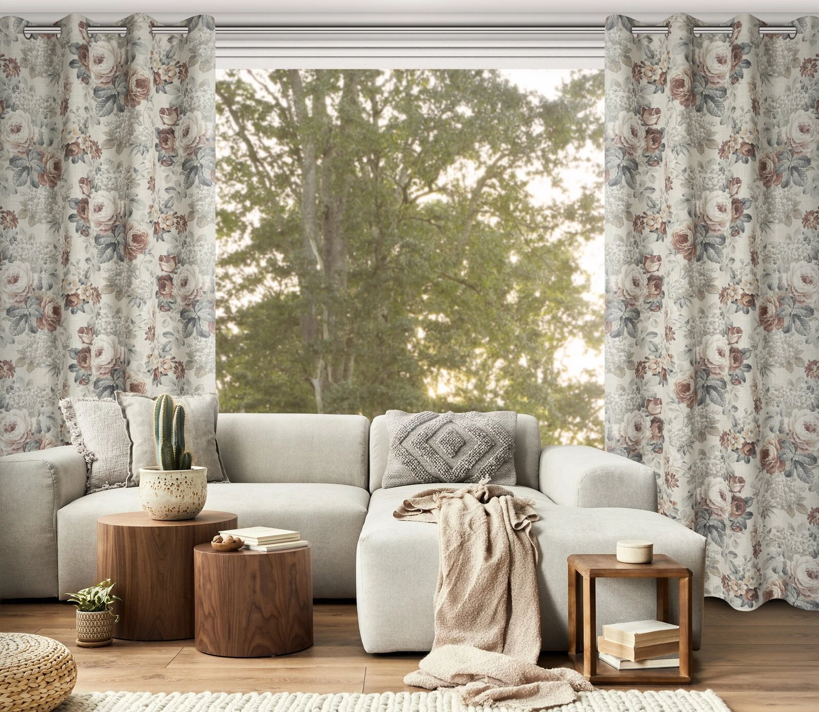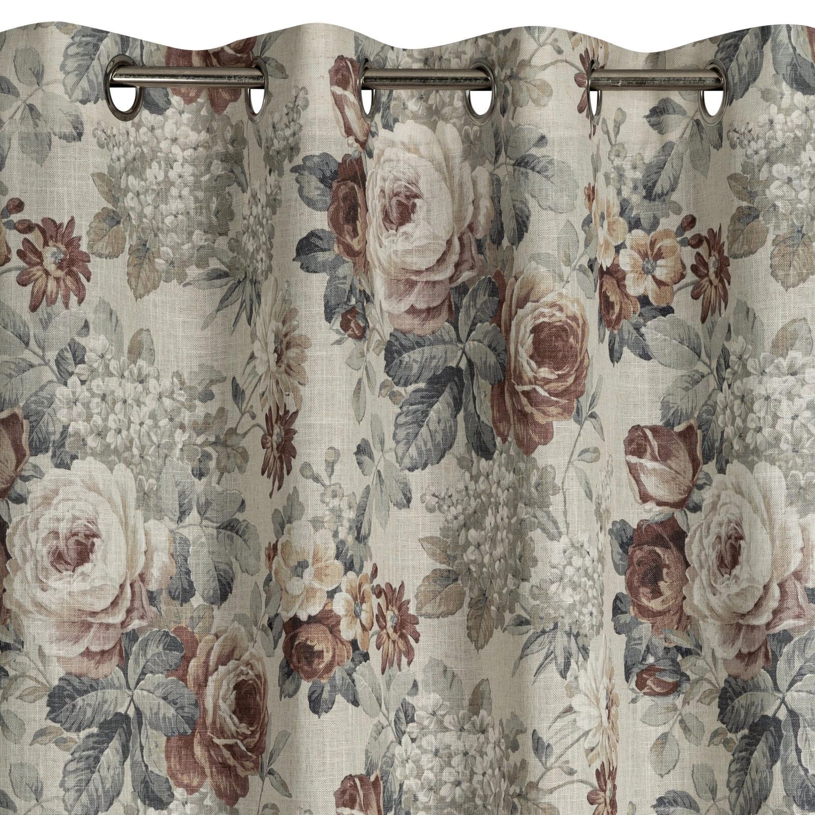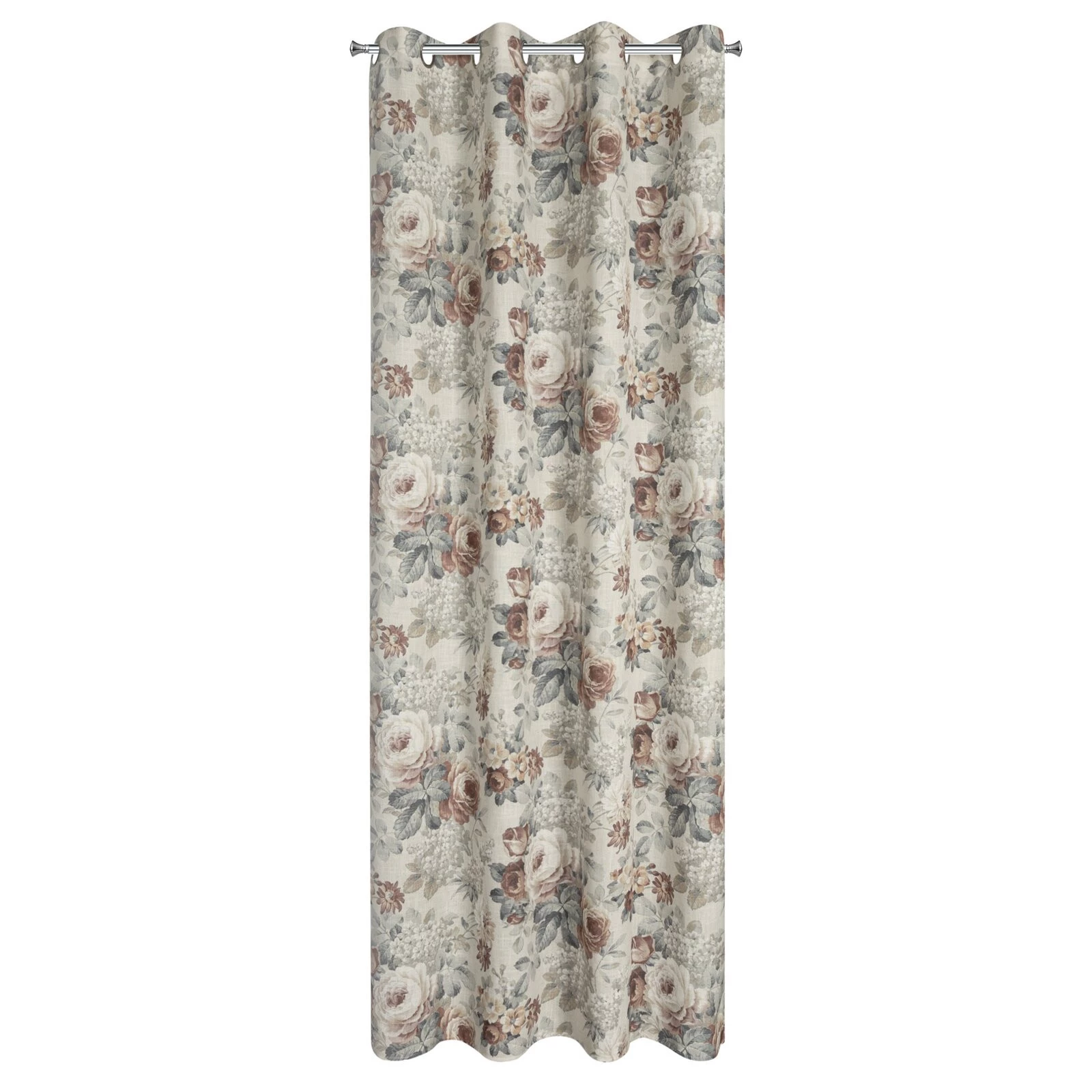 Zasłona z tkaniny w stylu eko z dodatkiem lnu, z kwiatowym nadrukiem szerokość: 140 cm, długość: 250 cm, kolor: naturalny, Gramatura: 220 GSM, Skład: 15% len, 85% poliester