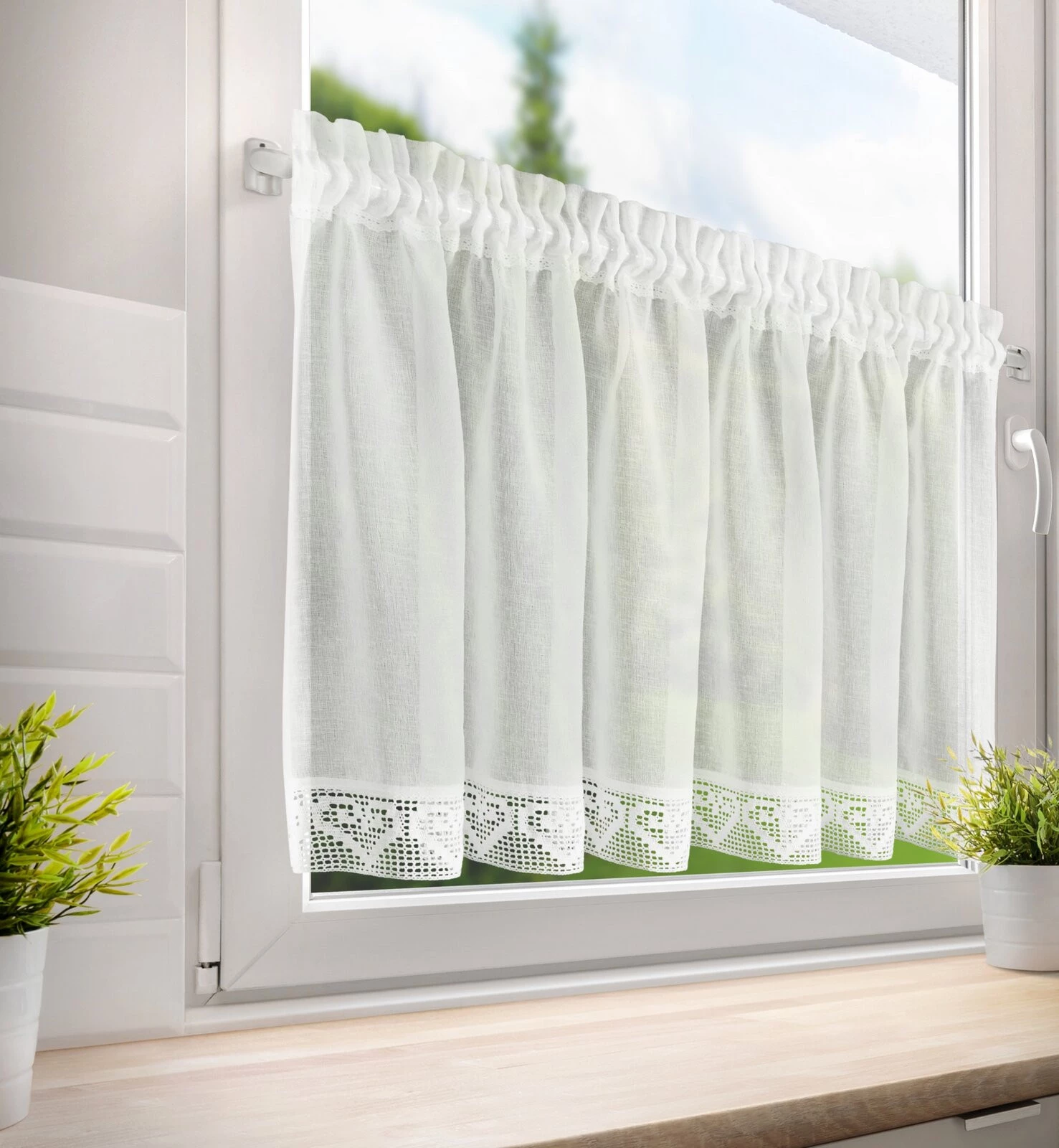 - Zazdrostka zdobiona koronką szerokość: 150 cm, długość: 60 cm, kolor: kremowy, Gramatura: 110 GSM, Skład: 100% poliester