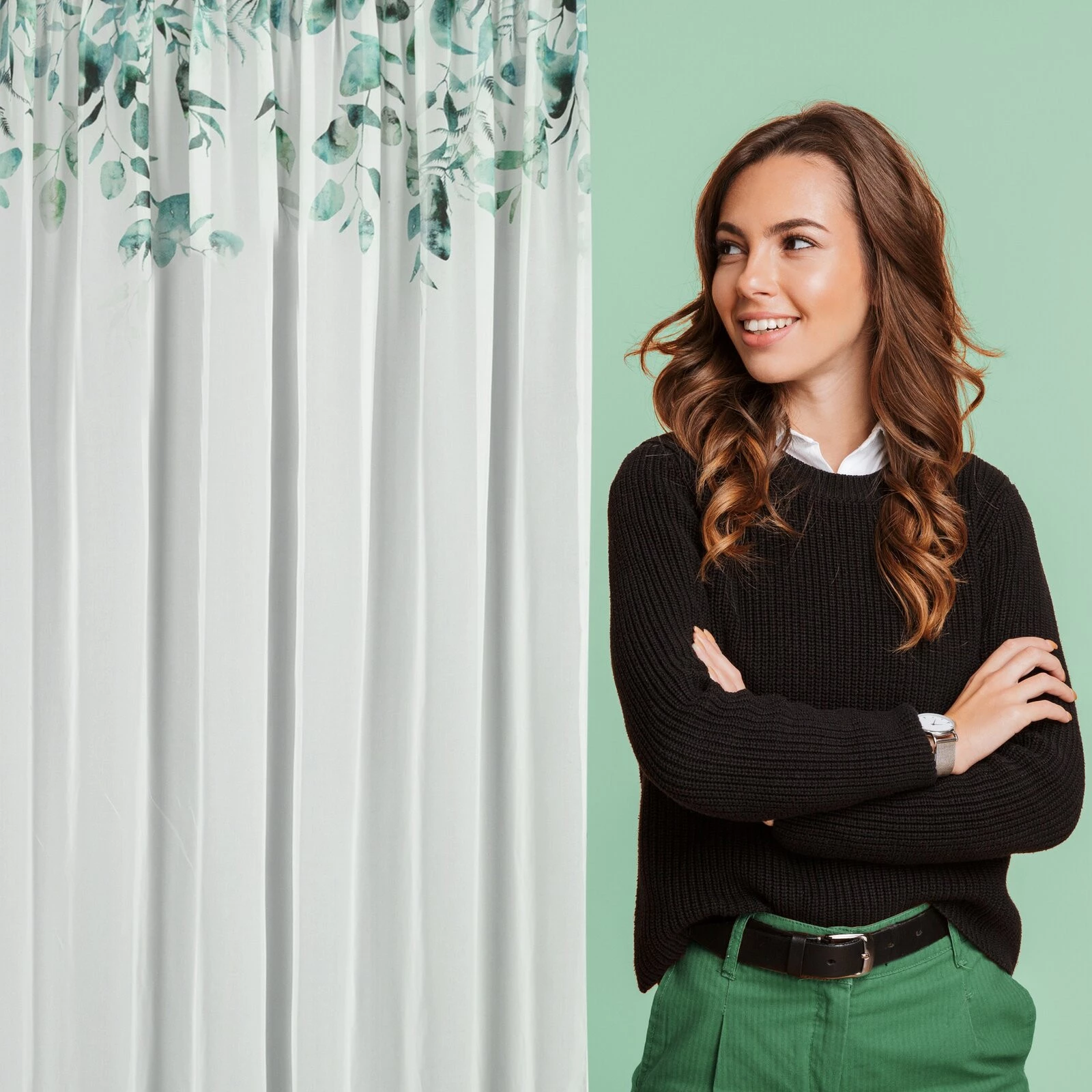 Zasłona gotowa z nadrukiem szerokość: 350 cm, długość: 250 cm, kolor: biały, Gramatura: 70 GSM, Skład: 100% poliester