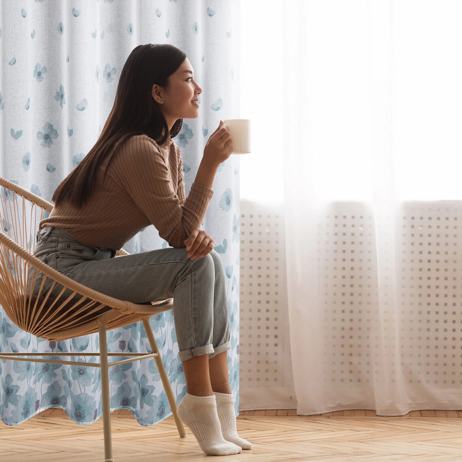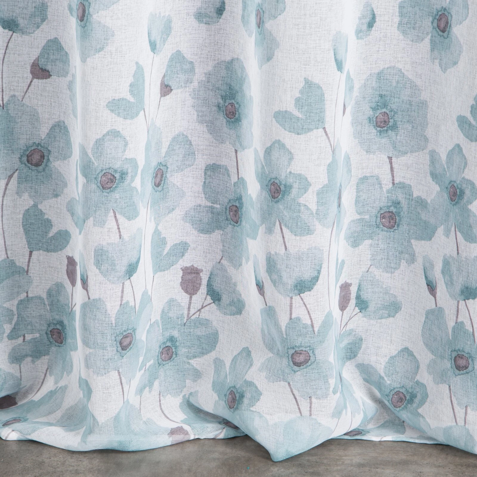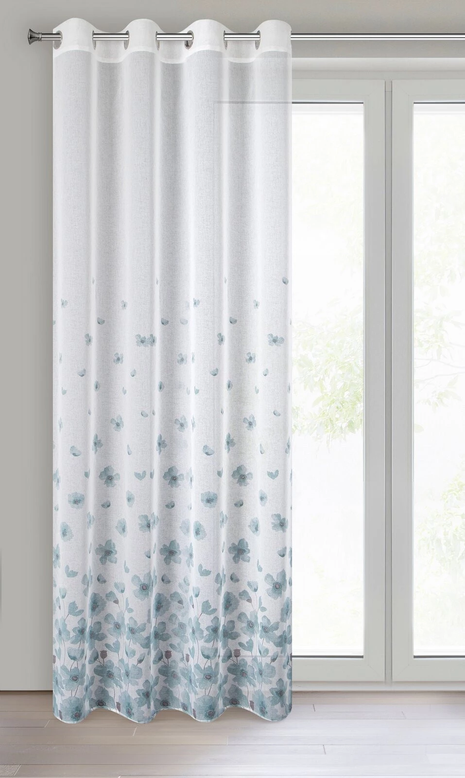 - Zasłona gotowa z etaminy z kwiatowym nadrukiem szerokość: 140 cm, długość: 250 cm, kolor: biały, Gramatura: 75 GSM, Skład: 100% poliester