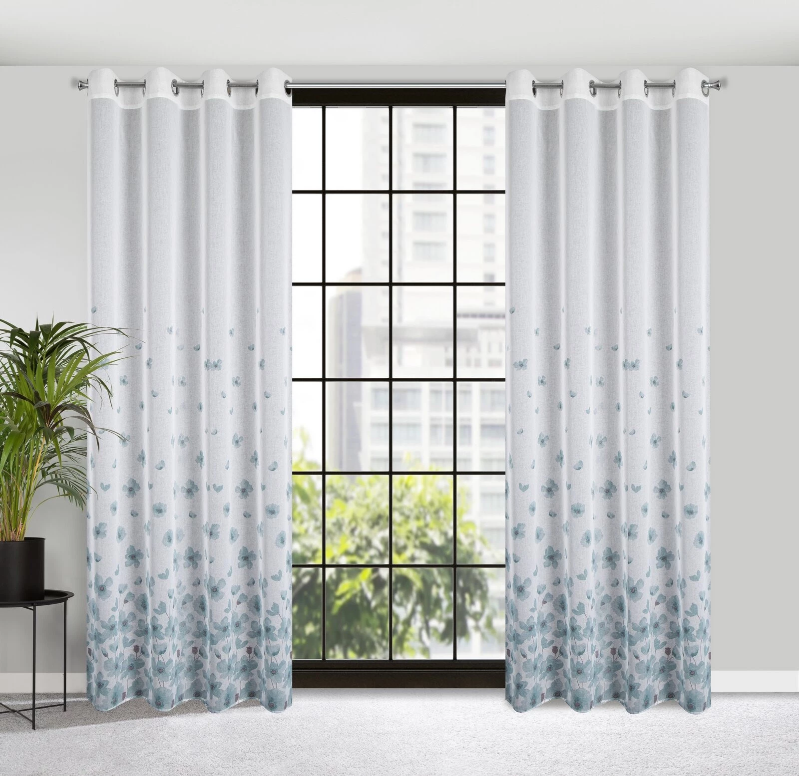 Zasłona gotowa z kwiatowym nadrukiem szerokość: 140 cm, długość: 250 cm, kolor: biały, Gramatura: 75 GSM, Skład: 100% poliester