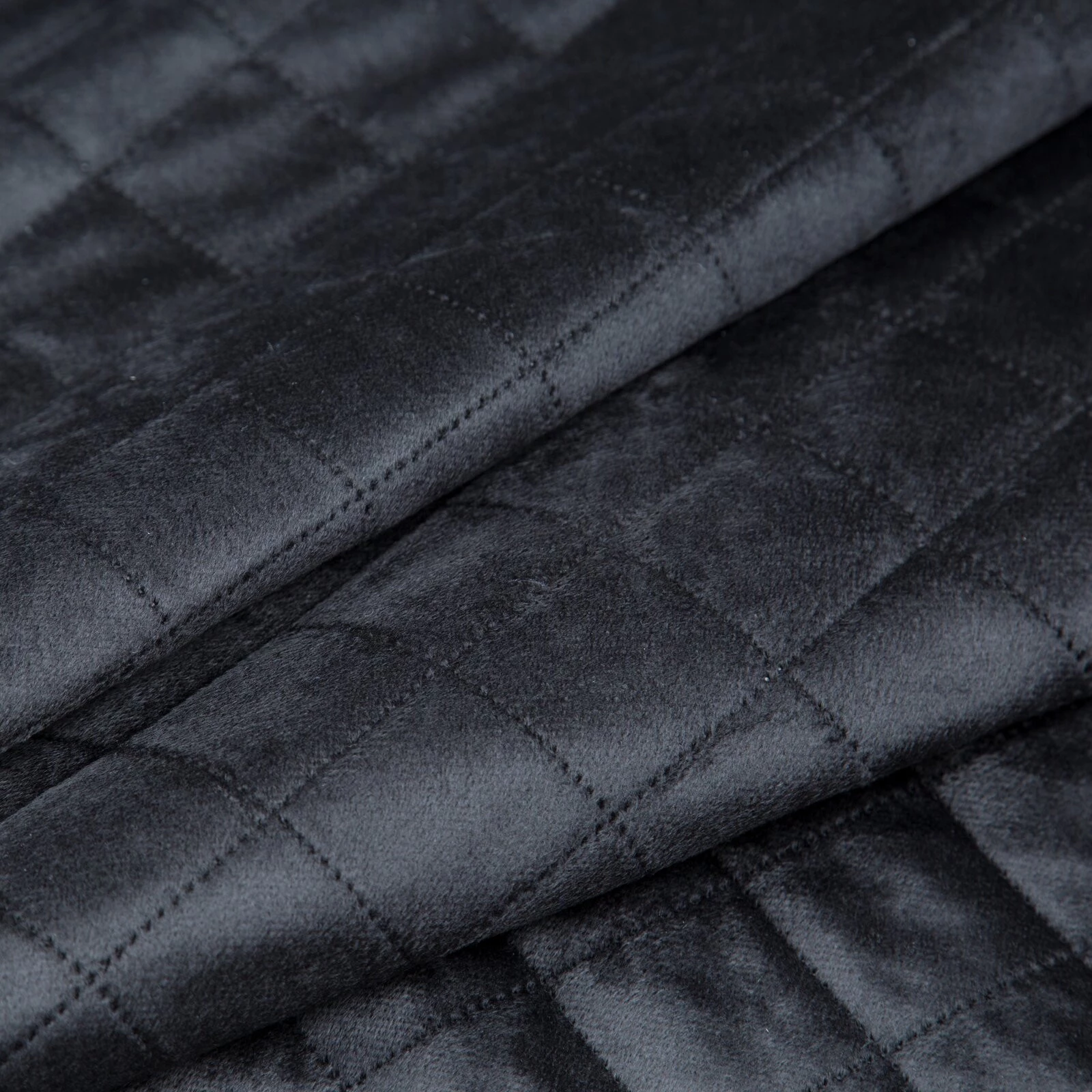 Przyjemna w dotyku narzuta pikowana metodą bezszwowego zgrzewania hotpress w subtelny wzór geometryczny. Sprawdzi się jako narzuta na łóżko lub sofę w salonie. szerokość: 70 cm, długość: 160 cm, kolor: czarny, Gramatura: 150+100+65 GSM, Skład: 100% poliester