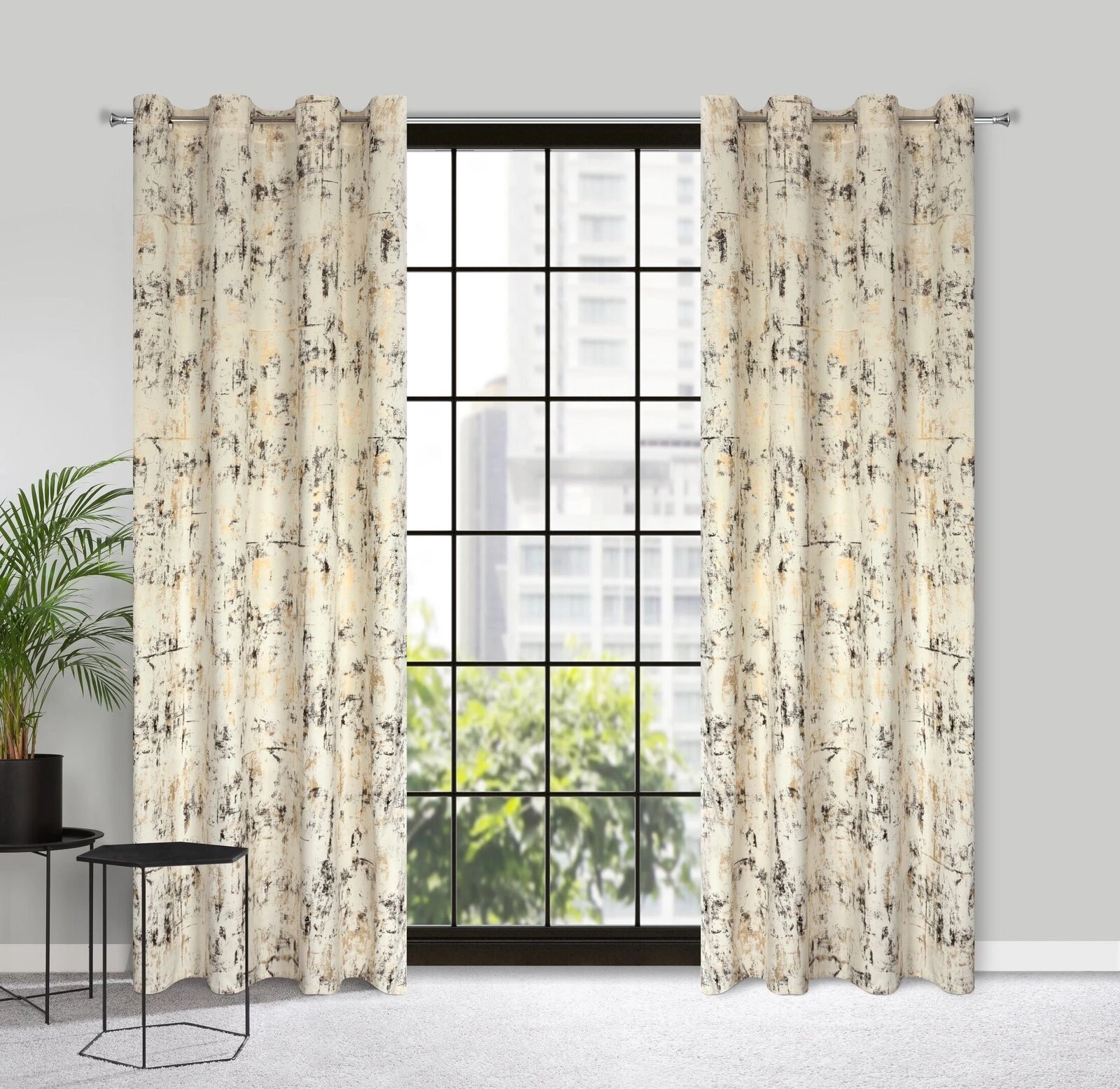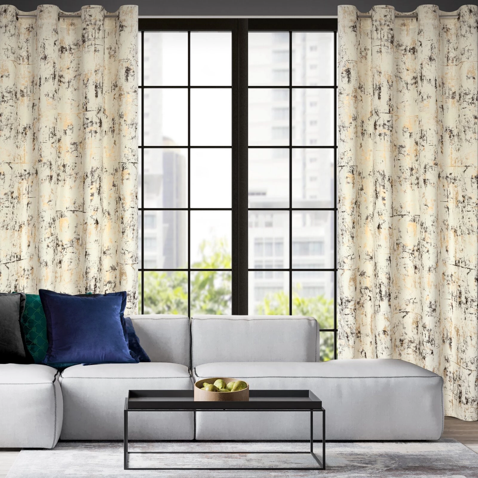 - Zasłona welwetowa ze złotym nadrukiem szerokość: 140 cm, długość: 250 cm, kolor: kremowy, Gramatura: 200 GSM, Skład: 100% poliester