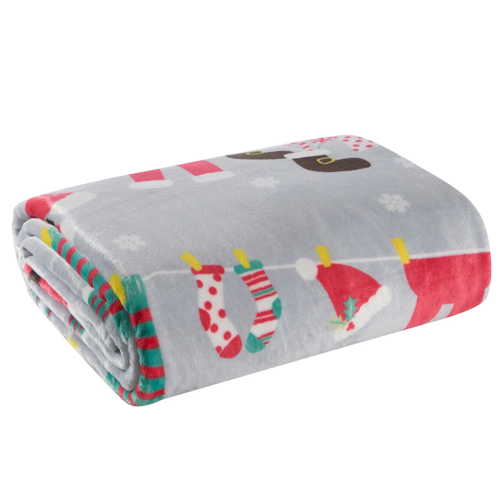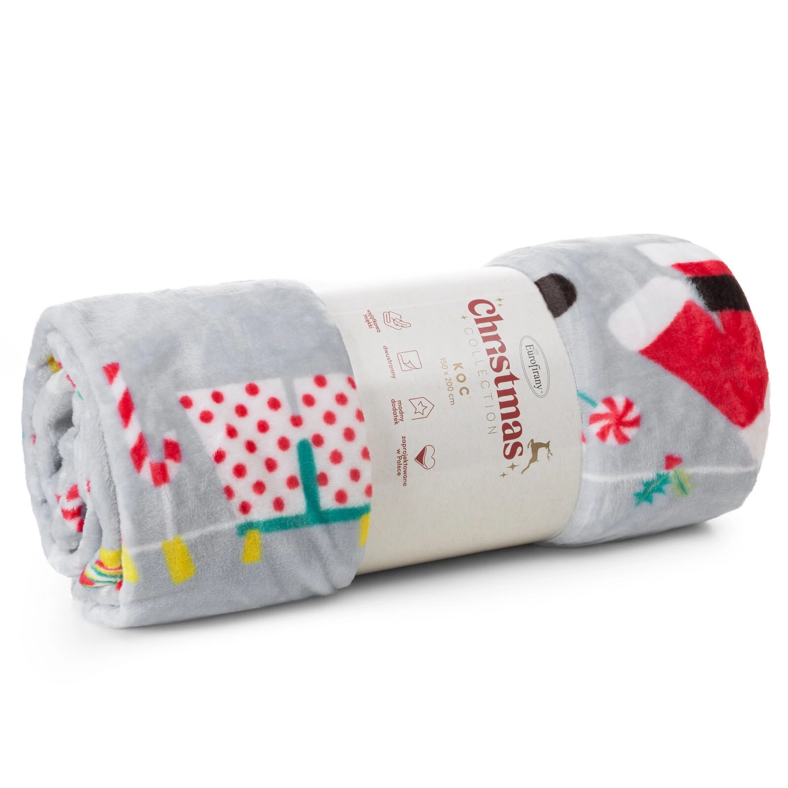 - Wyjątkowo miękki w dotyku koc z nadrukiem świątecznym szerokość: 150 cm, długość: 200 cm, kolor: szary, Gramatura: 300 GSM GSM, Skład: 100% poliester