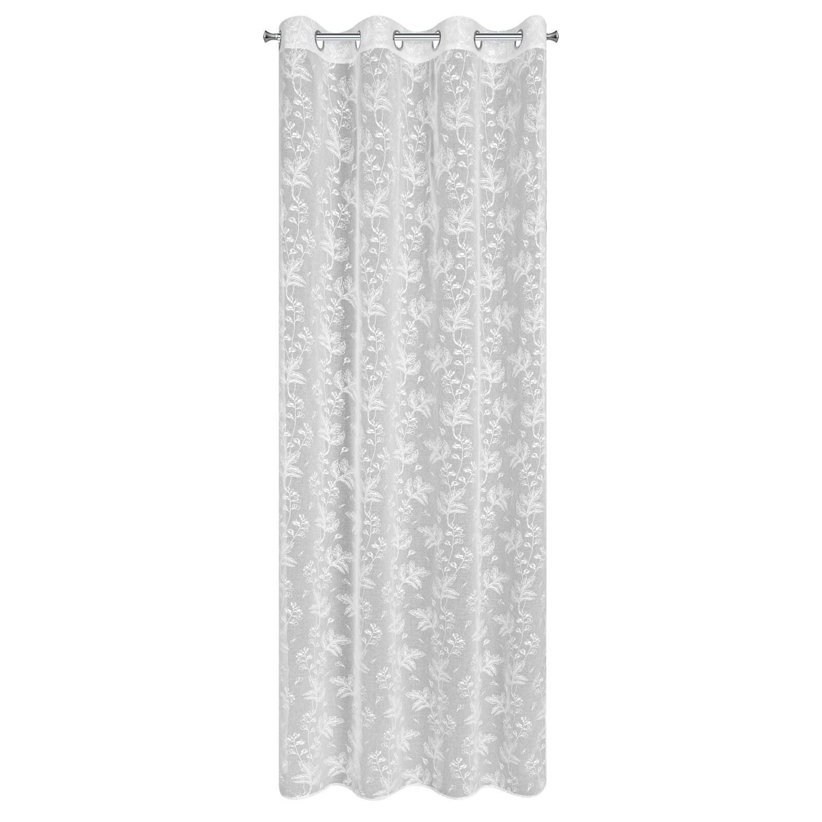 Firana gotowa zdobiona gumowanym nadrukiem szerokość: 140 cm, długość: 260 cm, kolor: biały, Skład: 100% poliester