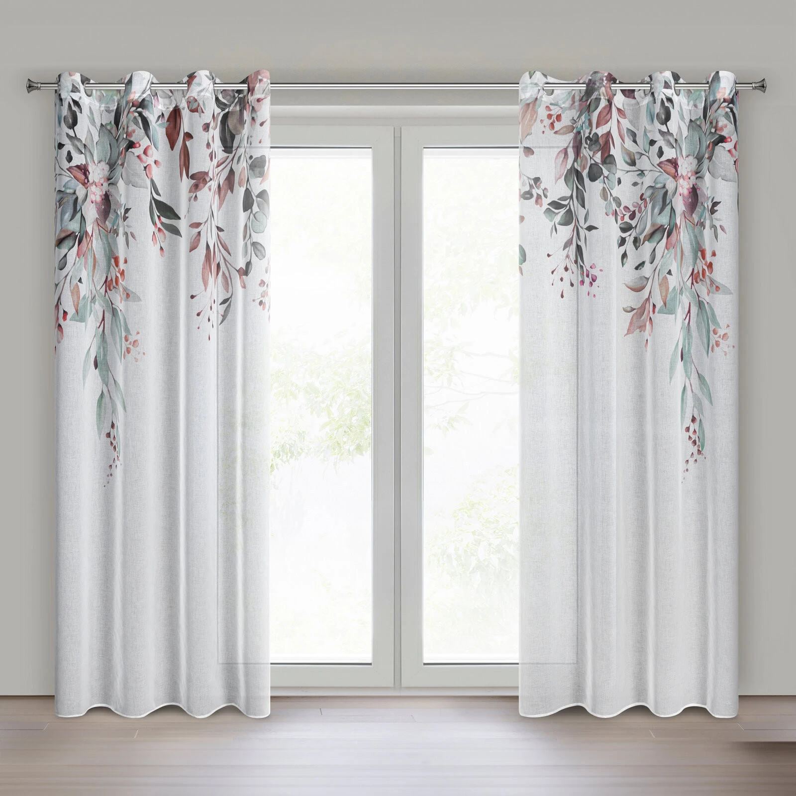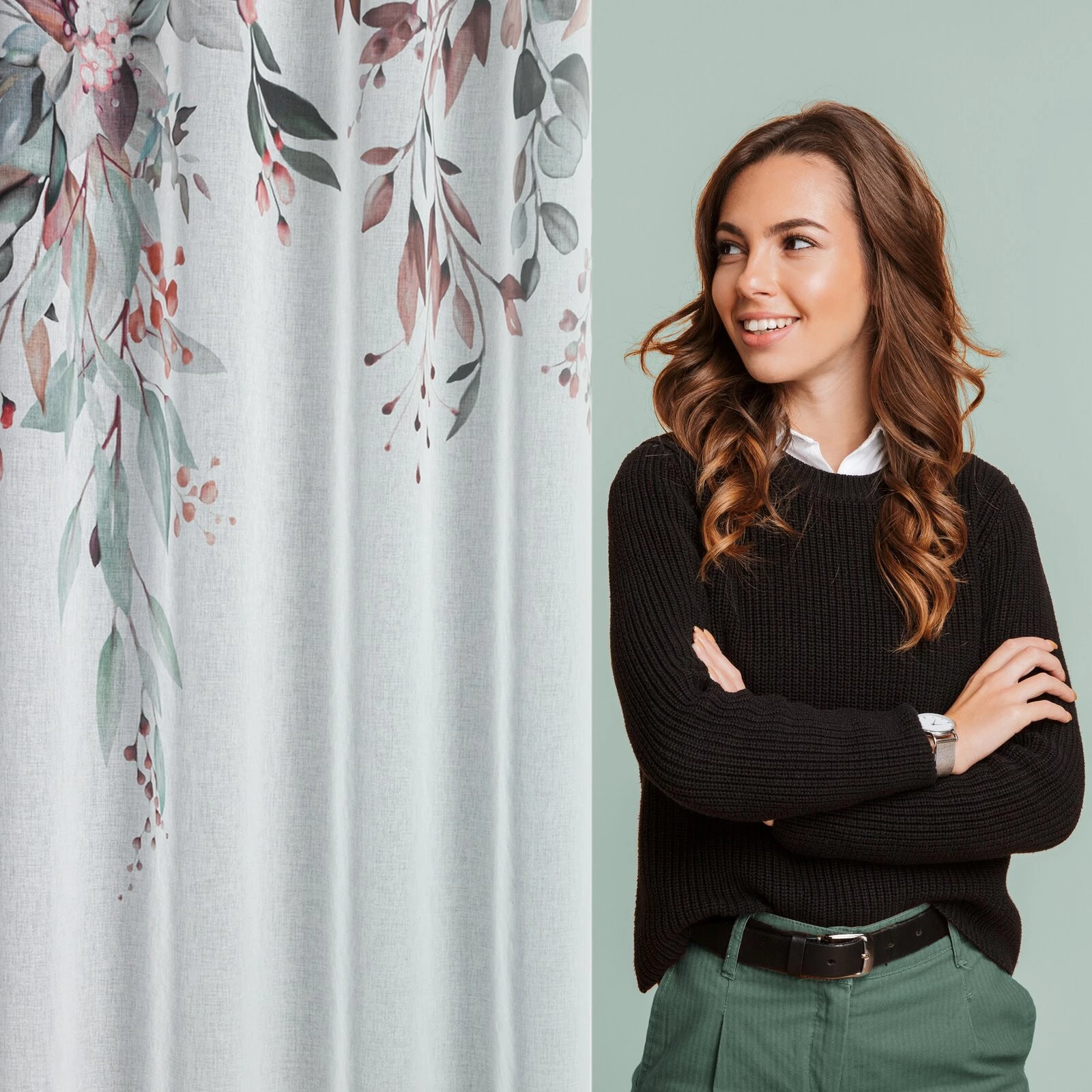 - Komplet zasłon gotowych z nadrukiem, pakowana po 2 szt szerokość: 140 cm, długość: 260 cm, kolor: biały, Gramatura: 70 GSM, Skład: 100% poliester