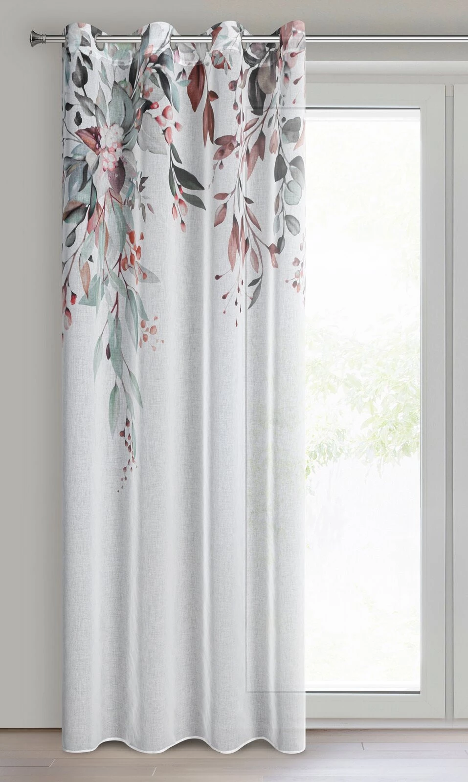 Komplet zasłon gotowych z nadrukiem, pakowana po 2 szt szerokość: 140 cm, długość: 260 cm, kolor: biały, Gramatura: 70 GSM, Skład: 100% poliester
