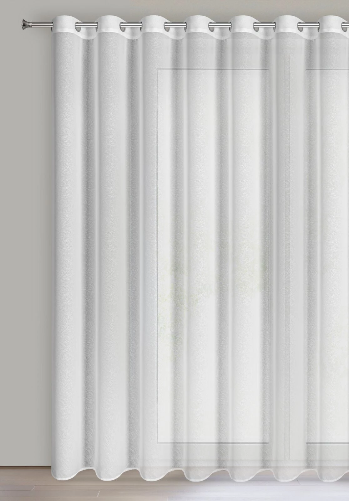 - Firana gotowa z tkaniny szyfonowej z delikatnym wzorem szerokość: 350 cm, długość: 250 cm, kolor: biały, Gramatura: 60 GSM, Skład: 100% poliester